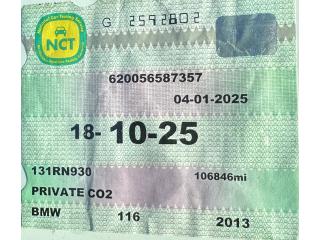 We at caroptions would like to present this stunning.BMW 116 D EFFICIENT DYNAMICS 3.DR//1 YEARS TAX//NEW N.C.T//.JUST SERVICED//Here at caroptions ,we dedicate ourselves in providing our customers with the most professional service available,our cars come fully valeted , fully serviced,full nct ,full cartell motorcheck report, all our cars come with comprehensive warranty packages. 3 Month Warranty, Trade in accepted, Central Locking, Immaculate condition, Electric Windows, Airbag, Alarm, Alloy Wheels, Fog Lamps, Immobiliser, Privacy Glass, Automatic Lights, Centre Armrest, Luggage Cover, Multi-function steering wheel, Traction Control, Multiple Air Bags, Xenon Lights, Anti-Theft System, Parking Sensors, Bluetooth, Brand New Tyres, Remote Central Locking, EBD, Isofix, Hill holder, History Checked, Finance Checked, Keyless Entry, Front Parking Sensors, Space Saver Spare Wheel, Wireless Smartphone Control, Active Safety Braking / City Brake / Collision Alert, Stop/Start Button, Dual Zone Climate Control, 2 Keys, External Devices Connectivity, Cup holders, Remote boot/hatch/rear door release, Stability control