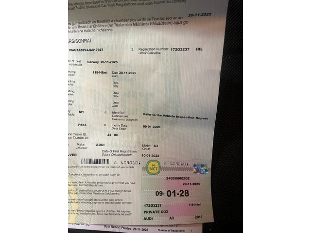 **WE ARE OPEN BY APPOINTMENT ONLY** Warranty, Just Passed Nct, We Sold This A3 Before And Just Traded Back Into Stock, All Our Cars Go Through A Full Inspection Performed By Our On Site Technicians, We Will Also Provide A Battery Health Check Report Where Applicable, Before You Buy, We Ensure Transparency. Each Of Our Used Electric/Hybrid Vehicles Include A Battery Checked Cert, *All Prices Are Quoted As Straight Deal Prices. Trade Ins Are Accepted At Retail Price. Phone Mark (087 9254636) Oliver (087 2649830) Or Cian (087 3677230) For More Details* Over 30 Years Experience Supplying Quality Cars, With Over 120 Cars In Stock We Have A Car To Suit Everyone's Needs, We Are Located Just 5 Minutes Off The M18 Motorway Exit 17 For Ardrahan, Due To Our High Stock Turn Over Before Travelling Please Phone Ahead To Confirm That The Vehicle You Are Enquiring About Has Not Already Been Sale Agreed, We Can Tailor A Finance Package To Suit Your Needs, You can apply for finance by filling in the application form on our website, Olivergeoghegancarsales.ie (TI2913) Central Locking, Electric Windows, Airbag, Rear Spoiler, Centre Armrest, Multi-function steering wheel, Traction Control, Metallic Paint, Parking Sensors, Bluetooth, EBD, Isofix, Active Safety Braking / City Brake / Collision Alert, Stop/Start Button, External Devices Connectivity, Cup holders, Remote boot/hatch/rear door release, Stability control