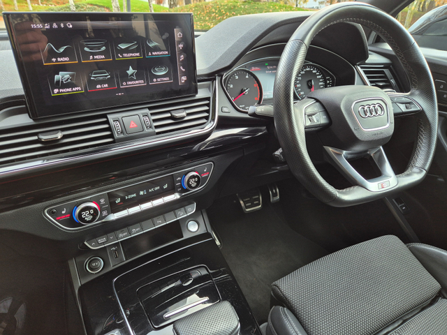 AUDI Q5 2.0TDI SLINE Face Lift Model Presented in Daytona Grey Metallic over half Leather and Alcantara Interior -Black Edition Pack -21" New Alloys and Tyres -Flat Bottom Steering Colume -Wide Screen Touch Display -Heated Seats -Digital Climate Control with Air Conditioning -Ambient Cabin Lighting -Audi Drive Select -Multifunction steering Colume -Cruise Control -Fully Electronic Tailgate -Led Daytime Running Lights -9 Stamp Audi Service History Price inclusive 3 months warranty 12 months available Trade in Considered 5 star Google Rating Clean Motorcheck Report We are an authorised credit intermediary-Authorised by the Competition and Consumer Protection Commission. CCPC, Contact One Of Our Qualified Financial Advisors To Discuss Your Personal Lending Needs. We Deal With a Majority Of The Major Lenders In Ireland and We Can Tailor a low rate % Finance Package To Suit Your Needs www.calibermotors.ie Viewings by appointment at Caliber Motors D22N7N3 Central Locking, CD Player, Electric Windows, Airbag, Cruise Control, Rear Spoiler, Centre Armrest, Multi-function steering wheel, Roof Rails, Satellite Navigation, Traction Control, Metallic Paint, Parking Sensors, Bluetooth, EBD, Isofix, Apple Car Play, Android Auto, Active Safety Braking / City Brake / Collision Alert, Stop/Start Button, External Devices Connectivity, Cup holders, Remote boot/hatch/rear door release, Stability control