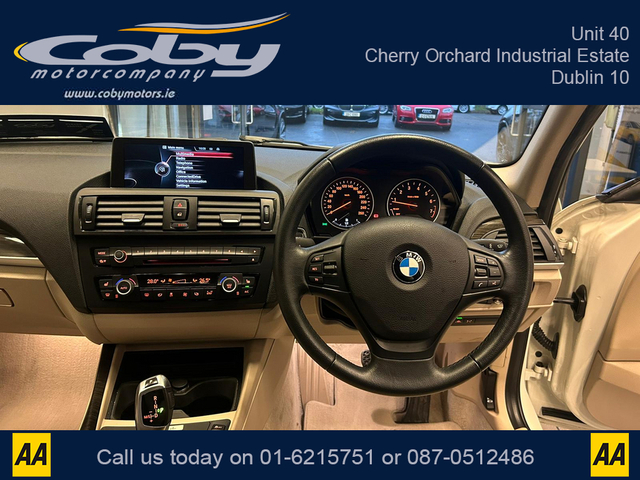 2014 BMW 1 SERIES 1.6 5DR AUTO. Sat Nav, Pristine Car with only 104km, 2 Keys, New NCT done before collection. Full Leather, Alloy Wheels, Dual Climate Control, Heated Seats, Reverse Camera, Bluetooth, MFSW and more.