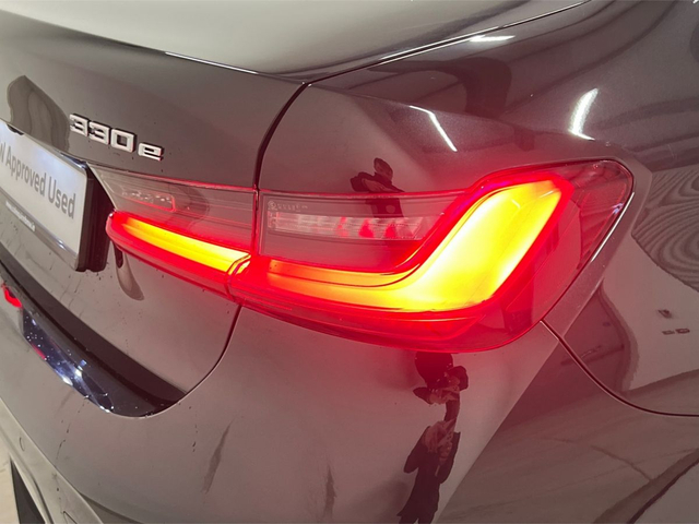 BMW 3-Series 330e M Sport • Control BMW TeleServices • DAB Radio • eDrive Exterior Sound • Live Cockpit Plus • Cruise control • Sport automatic transmission • Exterior trim High-gloss Shadowline • M Sport Exterior Styling • M Sport Package • Anthracite Headlining • Extended storage • Front Heated Seats • Front Sport Seats • M Sport Leather Steering Wheel • Rear Folding Headrest • Widescreen Display • Active Guard Plus • Alarm system • BMW Emergency call • BMW Online Services • Connected Package Professional • Folding Wing Mirrors • Parking Assistant • Passenger airbag deactivation • Split Folding Rear Seats