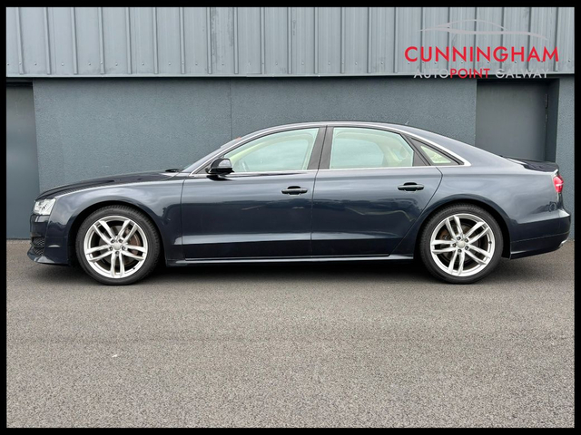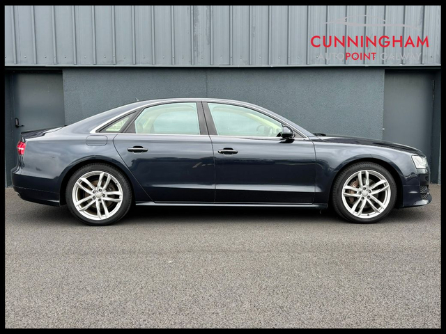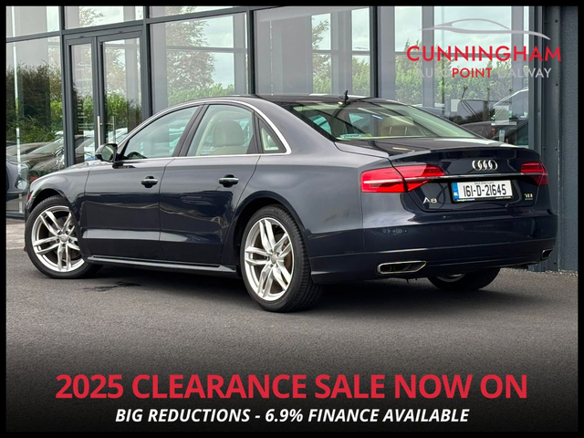 2016 (161D) Audi A8 3.0TDi SE Quattro in Moonlight Blue Metallic with Satin Beige Valcona Leather Interior. A rare low mileage example with just two owners from new and coming with the more powerful 262BHP 3.0L diesel engine. A very nicely specified car with features including 8-speed automatic transmission with four-wheel drive - 4-corner air suspension with electronic shock absorption control - Power front seats, heated, with memory feature - LED headlamps with High-beam assistant - Keyless Entry - Rear view camera - Park distance control in front and rear - Navigation system - Cruise control system - 20-inch Audi Sport cast aluminium alloy wheels - Tailgate power closing - Exterior mirrors with memory feature, auto-dimming, power-folding and heated - Leather-wrapped multi-function sports steering wheel with tiptronic - Space-saving spare wheel - ISOFIX child seat anchors in rear - Anti-theft alarm system. This car will be fully serviced prior to sale and comes complete with a 12 months / 20,000km warranty with 12 Months AA Premium Assistance. We accept most makes and models in Part Exchange subject to having full service history, a current NCT test (minimum six months to expiry) and verifiable mileage. To discuss this car further and / or receive a part exchange valuation please call into our showroom, phone us on 091 383000 or send us an online enquiry - You can also reserve this car for 48 hours on our website - Due to fast stock turnaround we recommend phoning in advance of travelling to check if the car of your choice is available - We are an independently owned and operated dealership and our highly experienced team have over 100 years of combined motor industry experience.