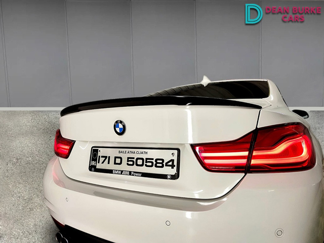 Check out our 5 star Google reviews M Performance Straight sale price 22900 Trade in price 23900 € 105 Per Week apply for finance below https//www.deanburkecars.ie/apply-for-finance/?4250554 2017 BMW 4 SERIES 420D AUTO COUPE M PERFORMANCE M SPORT PLUS M PERFORMANCE 8 SPEED AUTO FINISHED IN SOUGHT AFTER COLOUR COMBO OF ALPINE WHITE LEATHER SEATS SERVICE HISTORY JUST FRESHLY SERVICED ALL BOOKS MANUALS ETC 2 REMOTE KEYS TAX €280 SPEC INCLUDES ALL USUAL M SPORT REFINEMENTS PLUS ALL M PERFORMANCE EXTRAS FOLD DOWN BACK SEATS HEATED SEATS M PERFORMANCE FRONT SPLITTER M PERFORMANCE SIDE SKIRT EXTENSIONS M PERFORMANCE SPOILER BLACK KIDNEY GRILLS FLAPPY STEERING WHEEL XENON LIGHTS BLUETOOTH SAT NAV NEW IDRIVE VERSION AIR CONDITIONING M SPORT MULTIFUNCTIONAL STEERING WHEEL PLUS ALL USUAL EXTRAS * Due to a high turnover in stock we recommend that you contact our sales team to make sure the car is still available and to make an appointment Central Locking, Electric Windows, Airbag, Cruise Control, Fog Lamps, Centre Armrest, Multi-function steering wheel, Satellite Navigation, Traction Control, Anti-Theft System, Parking Sensors, Bluetooth, EBD, Isofix, Keyless Entry, Active Safety Braking / City Brake / Collision Alert, Stop/Start Button, Touch Screen Media Control, External Devices Connectivity, Cup holders, Remote boot/hatch/rear door release, Stability control