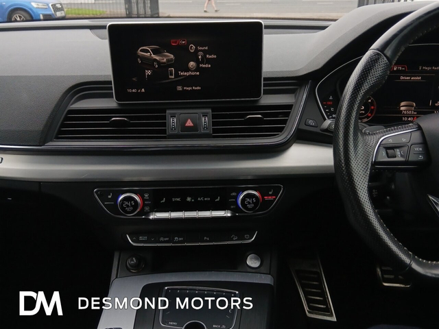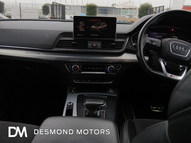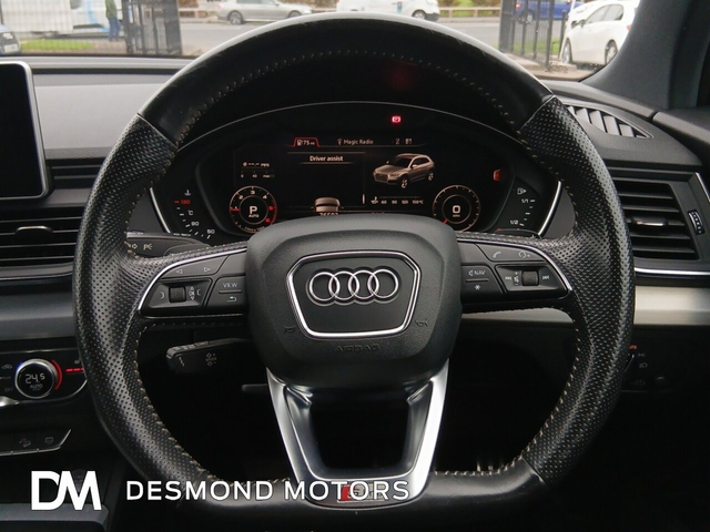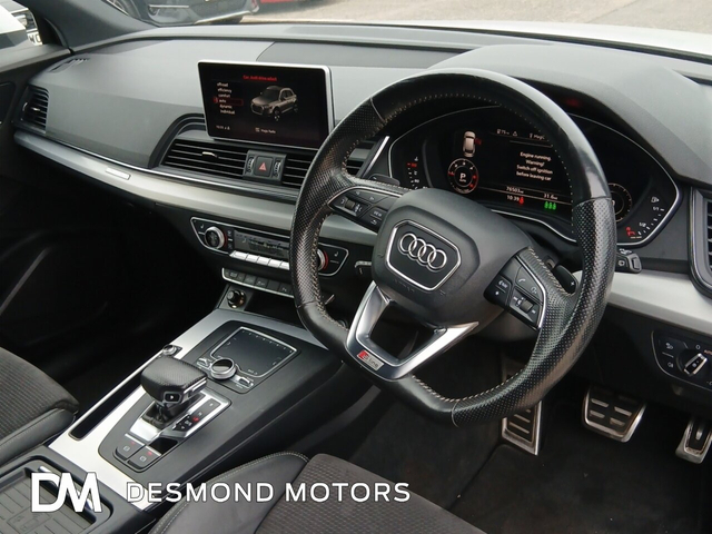 This 2017 Audi Q5 TDI S line presents a remarkable opportunity with its exceptionally low mileage for its age, having covered just 76,473 miles. As a Euro 6 compliant model, this four wheel drive SUV boasts a powerful yet efficient 2.0 litre diesel engine, offering a compelling blend of performance and economy. The S line trim ensures a premium experience, featuring a large boot space perfect for all your needs, whether for daily errands or longer journeys. Central Locking, Electric Windows, Airbag, Cruise Control, Fog Lamps, Rear Spoiler, Centre Armrest, Multi-function steering wheel, Roof Rails, Traction Control, Metallic Paint, Anti-Theft System, Parking Sensors, Bluetooth, EBD, Isofix, Active Safety Braking / City Brake / Collision Alert, Stop/Start Button, External Devices Connectivity, Cup holders, Remote boot/hatch/rear door release, Stability control