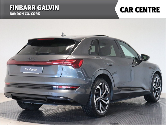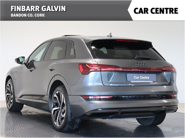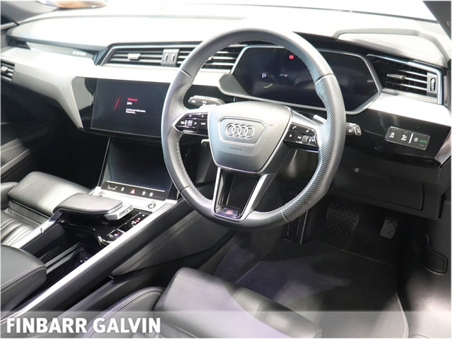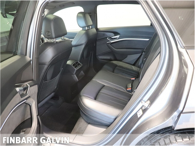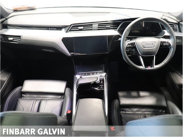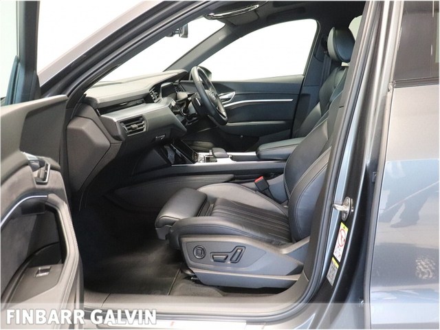Audi e-tron 55 quattro S Line Air conditioning, Climate control, Dual zone climate control, Armrest, Keyless entry, Electrically adjustable seats, Electric boot, Electric side mirrors, Electric windows, Electric handbrake, Heated seats, Lumbar support, Multi-function steering wheel, Rain sensor, Split rear seats, Android Auto, Apple CarPlay, Bluetooth, MP3 compatible, 12v power outlet, Radio, Touch screen display, USB connection (front), Wifi, Cruise control, Hill hold assist, Navigation system, Parking camera, Front parking sensors, Rear parking sensors, Remote boot release, Speed limiter, Voice control, Parking assistance, Digital instrument panel, Alloy wheels, Leather interior, Leather steering wheel, Spoiler, Sports seats, Adaptive headlights, Ambient lighting, Auto lights (dusk sensor), Daytime running lights, Fog lights, High beam assist, LED headlights, ABS, Anti collision system, Alarm system, Emergency brake assist, Central locking, Remote central locking, Driver-side airbag, Immobilizer, Isofix, Lane departure warning, Tyre pressure monitor, Passenger-side airbag, Seat belt warning, Side airbag, Stability control, Traction control, Emergency tyre repair kit, Air suspension, 4WD, Sport suspension
