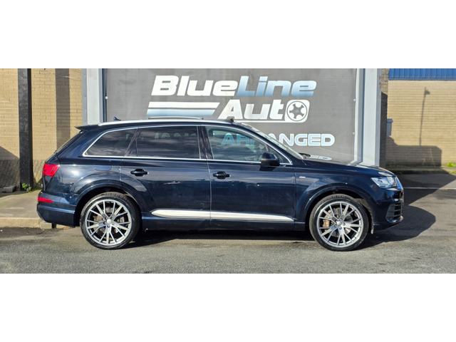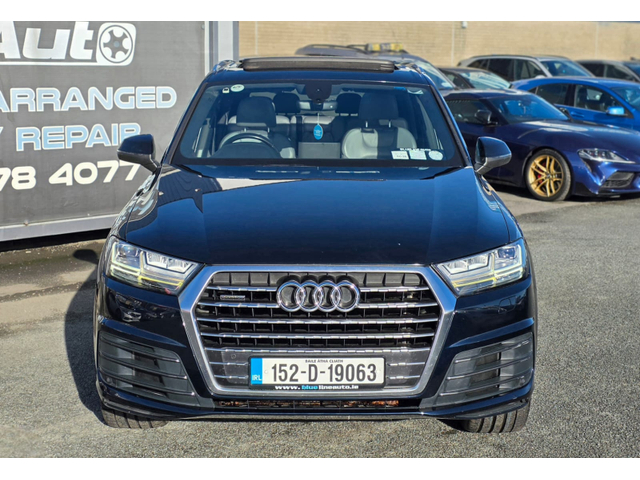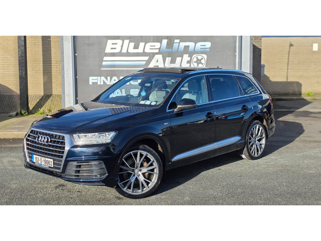 Audi Q7 S-Line Quattro 7 Seater High Spec Low Miles (152) DRIVE THIS BEAUTY AWAY TODAY FROM AS LITTLE AS €164 PER WEEK OVER 5 YEARS FINANCE WITH €0 DEPOSIT ! 1 Previous Owner Will Come With Brand New NCT Brand New 22" Alloy wheels Irish Car From New Napa Grey Leather Interior Cartell History Checked Audi Service History Reversing Camera Digital Gauge Cluster Full Tilt Open Sunroof Electric Tailgate 4 Brand New Tyres Full Electric Seats LED Headlights Heated Front Seats Full Leather Interior 360 Parking sensors Bluetooth multimedia Cruise control A/C X2 Keys Sat Nav LED Daytime running lights Electric Folding Rear seats Dual Climate Control And so much more! 3 months warranty as Standard! For any more info please contact us 0877784077 or Email [email protected] FINANCE ARRANGED! https//www.bluelineauto.ie/ 3 Month Warranty, Central Locking, Electric Windows, Airbag, Rear Spoiler, Centre Armrest, Multi-function steering wheel, Roof Rails, Satellite Navigation, Traction Control, Metallic Paint, Anti-Theft System, Parking Sensors, Bluetooth, EBD, Isofix, Active Safety Braking / City Brake / Collision Alert, Stop/Start Button, Touch Screen Media Control, 2 Keys, External Devices Connectivity, Cup holders, Remote boot/hatch/rear door release, Stability control