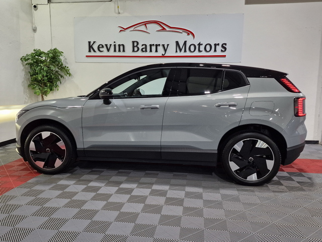 2024 (241) Volvo EX30 Single Motor Extended Range Plus (69KWH Battery) 272BHP Automatic presented in stunning Vapour Grey Metallic with Half Leather Upholstery. One Owner car from new which comes complete with a Full SIMI History Report and a Spare Key Card. Low Annual Road Tax of €120. This car has the larger 69KWH Extended Range / long range battery with a WLTP range of 476km compared to the entry level 51KWH Single Motor battery which has a WLTP range of 337km. High Spec model which comes equipped with - 19inch Bi-Colour Alloy Wheels - Air Conditioning - Automatic Lights & Wipers - Apple CarPlay & Android Auto Supported - Bluetooth Integration with Audio Streaming - Blind Spot Assist - Centre Armrest - DAB Digital Radio - Digital Dual Zone Climate Control - Driver Alert System - Electric Bootlid - Electric Folding Door Mirrors - Front & Rear Parking Assist - Google Assistant - Harman Kardon Premium Surround Sound - Heated Front Seats - Heated Steering Wheel - Hill Descent Control - Lane Keeping Aid - Lane Change Assist - LED Headlights & LED Rear Lights - Multi-Function Leather Steering Wheel - Navigation via Google Maps - Pilot Assist with Speed Limiter - Reverse Camera - Rear Tinted Glass - Steering Assist - Wireless Phone Charging - Wi-Fi Connectivity - Isofix System and much more ... This car will be sold Fully Serviced and with the balance of it's Volvo Manufacturers Warranty until 02/2027. Kevin Barry Motors are an award winning car dealership having won "Carsireland - Best Presented Cars in Leinster for 2024". Most trade ins accepted and competitive finance can be arranged. Please call or email our sales team today for any further details.
