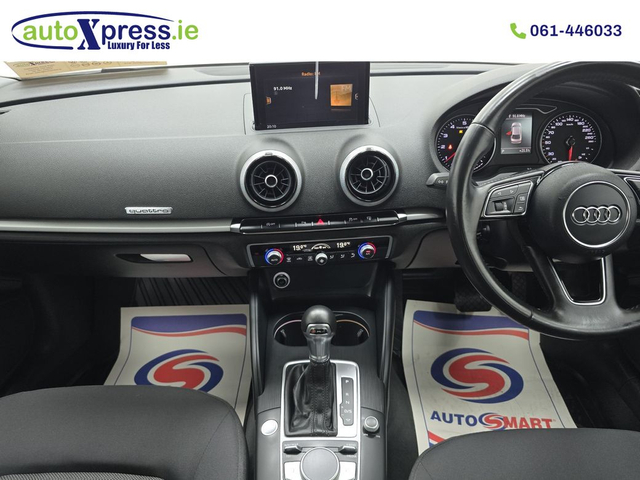 Welcome to AutoXpress.ie – Luxury for Less! Introducing the 2017 Audi A3 2.0 TFSI Quattro Automatic – a premium compact car with Audi's renowned Quattro all-wheel-drive system, delivering exceptional performance and handling for every journey. Sleek design, a powerful engine, and cutting-edge features make it the perfect choice for those who value both luxury and reliability. Why Choose AutoXpress.ie? 6 Months Premium Warranty Included Trade-Ins Welcome – Upgrade your vehicle hassle-free After-Sales Service – Dedicated support beyond the sale Finance Options Competitive finance rates available! Apply today via our website: www.autoxpress.ie Key Vehicle Details: Year: 2017 Model: Audi A3 2.0 TFSI Quattro Transmission: Automatic Mileage: 35,949 Miles NCT Valid Until: 11/2027 Just Serviced for Top Performance Fully Valeted for a Fresh Showroom Look Vehicle History Report Available Upon Request Top Features: Front and Rear Parking Sensors – Effortless maneuvering and parking. Reversing Camera – Enhanced visibility for easy parking. Alloy Wheels – Stylish and durable. ISOFIX Child Seat Mounts – Secure and safe attachment for child seats. Electric Windows & Mirrors – Modern convenience with smooth operation. Heated Door Mirrors – Ensures clear visibility in cold or frosty conditions. Multifunction Steering Wheel – Convenient control at your fingertips. Start/Stop Button – Modern keyless engine ignition. Electric Handbrake – Modern convenience and space-saving design. Automatic Climate Control (AC) – Ensures optimal cabin comfort. Phone Connectivity – Seamless smartphone integration for calls and media. Central Locking – Enhanced security for your vehicle. Engine Start/Stop System – Enhanced fuel efficiency. Traction Control – Confident handling in all conditions. Cruise Control – Smooth and relaxed long-distance driving. USB/AUX Connectivity – Multiple options for media playback and device charging. Quattro All-Wheel Drive – Maximum traction and stability in all conditions. Auto Lights – Convenient and safe illumination. Contact Us Today: Call us in Limerick at 061-446033 or Galway at 091-335696 for more details or to schedule a test drive. Visit www.autoxpress.ie to explore finance options and secure this 2017 Audi A3 2.0 TFSI Quattro Automatic today! Drive luxury for less – reserve yours now!