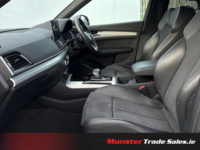 2022 Audi Q5 50 TFSI e S Line Black Edition | 220kW | Quattro | PHEV Stunning Audi Q5 S Line Black Edition finished in Mythos Black Metallic with S Line Dinamica/Leather interior. 220kW Plug-In Hybrid strong performance with excellent efficiency. Automatic (S Tronic) with quattro all-wheel drive. Key Features: - Black Edition Styling Pack - 20 Black Edition Alloys - Matrix LED Headlights - Privacy Glass - Audi Virtual Cockpit - Heated Seats - 3-Zone Climate Control - MMI Navigation Plus - Apple CarPlay / Android Auto - Reversing Camera - Parking Sensors - Cruise Control Condition: - Fully inspected - Professionally valeted - Excellent condition Comes with charging cables. Munster Trade Sales, Limerick Call for more info or to arrange a viewing Finance available | Trade-ins welcome