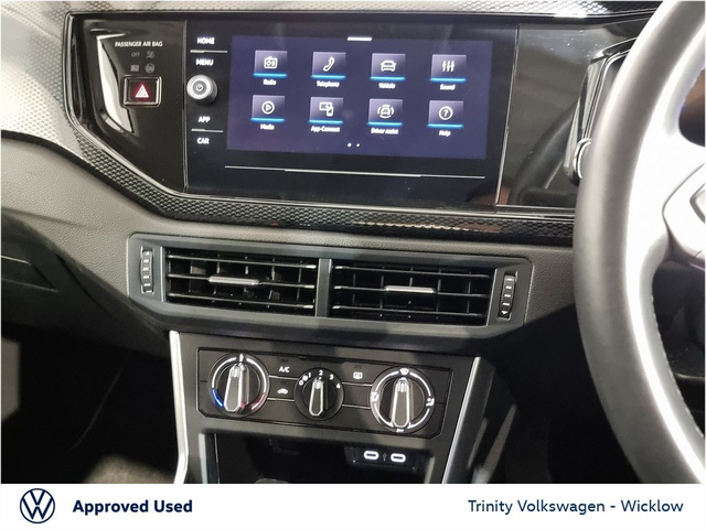 TRINITY VOLKSWAGEN ARE EXCITED TO OFFER THIS STUNNING VOLKSWAGEN POLO FINISHED IN DEEP BLACK PEARLSCENT PAINTWORK AND IS COMPLEMENTED BY CLOTH SEATING. - PLEASE NOTE PRICE QUOTED INCLUDES €2000 MAXIMUM SCRAPPAGE ALLOWANCE - RETAIL PRICE OF CAR €28950 - IT HAS A BEAUTIFUL SPECIFICATION WHICH INCLUDES - 15'' ESSEX ALLOY WHEELS - LED HEAD LIGHTS - PARKING SENSORS FRONT AND REAR - REAR VIEW CAMERA - CLIMATIC CONTROL - MF LEATHER STEERING WHEEL - APPLE CAR PLAY - LANE ASSIST - FRONT ASSIST - HILL START ASSIST - ELECTRIC HEATED POWER FOLDING MIRRORS - CENTRE ARM REST FRONT AND REAR - USB C X 2 FRONT - USB C X1 REAR - LOW RATE FINANCE ARRANGED - DEPOSIT SECURES CAR - CONTACT A MEMBER OF OUR SALES TEAM TODAY ON 0404 25200 TO ARRANGE A TEST DRIVE - TRINITY VOLKSWAGEN DUBLIN ROAD WICKLOW. The vehicle information displayed above highlights the typical specification of the most recent model of this vehicle. We offer this information in good faith however cannot guarantee the accuracy of any specification/information supplied as the specification can vary. You must physically check the specification of the vehicle on site prior to purchase. The specification & features on this website do not form part of the buying contract.