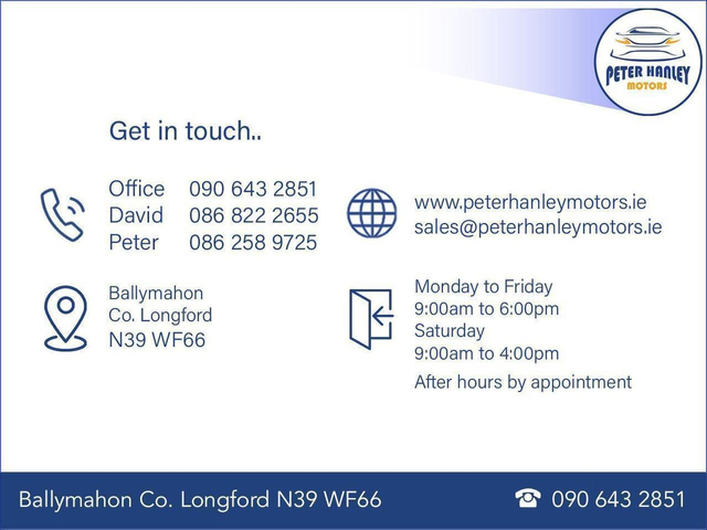 | Contact info: | Peter Hanley Motors Terlicken Ballymahon County Longford Ph: 090-6403078 |
