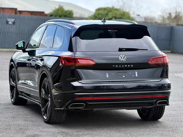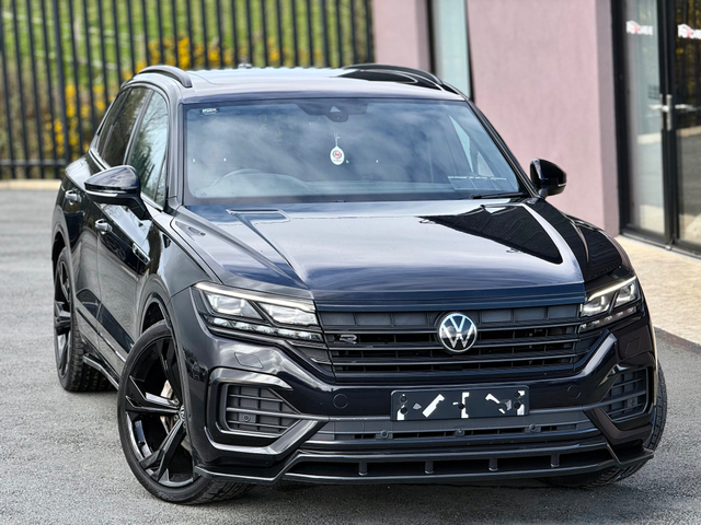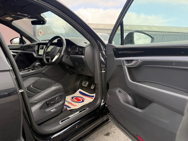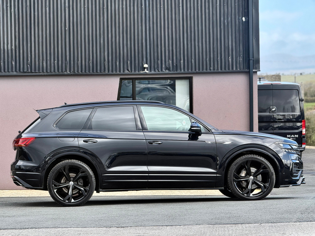 REDUCED! WAS €79,995 NOW €77,500 2022 Volkswagen Touareg R-Line Black Edition 3.0 V6 286bhp 4Motion Black Edition, finished in Deep Black Pearl, Professionally Fitted Bodykit! Has the electrically operated sunroof, full leather R-line interior, heated steering wheel, heated seats, 360 cameras. Optional Extra 22 gloss-black alloy wheels have been fitted, 286BHP Brand New Optional Extra 22 Inch Alloy Wheels fitted & Interior Features 15" premium touchscreen infotainment system Adaptive Cruise Control with distance monitoring 4-zone climate control Power-adjustable heated front seats with driver-memory Heated multifunction leather steering wheel Full leather upholstery Split-folding rear seats with ISOFIX child-seat points Panoramic tilt/slide sunroof Black Edition exterior styling LED headlights with adaptive lighting and headlight washers Privacy/tinted rear windows Keyless entry and keyless start Electric tailgate 360 parking cameras, front & rear parking sensors, Park Assist Online connectivity and navigation services USB-C ports and smartphone integration Apple CarPlay / Android Auto / App-Connect Ambient multi-colour interior lighting Digital instrument cluster Driver profile selection with adjustable driving modes Adaptive air suspension / adaptive chassis control Automatic headlights and rain-sensing wipers Heated washer jets Electric, folding, heated, auto-dimming exterior mirrors FDR Services * Fully Serviced, With a 40-point check * 3-Stage Polish & Fully Valeted * Open Monday to Friday, 9am - 6pm. Saturday 10am-4pm * Nationwide Warranty, Enjoy peace of mind with our nationwide warranty * Finance Available, Great finance options available with flexible deposit. Personalised finance arrangements can be discussed based on trade in values / deposits and desired monthly payments * Test Drives Made Easy, Contact our sales team to book your test drive today! !Deposit Secures any car! * Office, 0749723536 * Mobile, 0860453811 FULL SPEC INCLUDES Central Locking, Electric Windows, Airbag, Cruise Control, Sunroof, Rear Spoiler, Privacy Glass, Centre Armrest, Multi-function steering wheel, Roof Rails, Satellite Navigation, Traction Control, Anti-Theft System, Parking Sensors, Bluetooth, EBD, Isofix, Apple Car Play, Android Auto, Panoramic Sunroof, Active Safety Braking / City Brake / Collision Alert, Stop/Start Button, Touch Screen Media Control, External Devices Connectivity, Cup holders, Remote boot/hatch/rear door release, Stability control