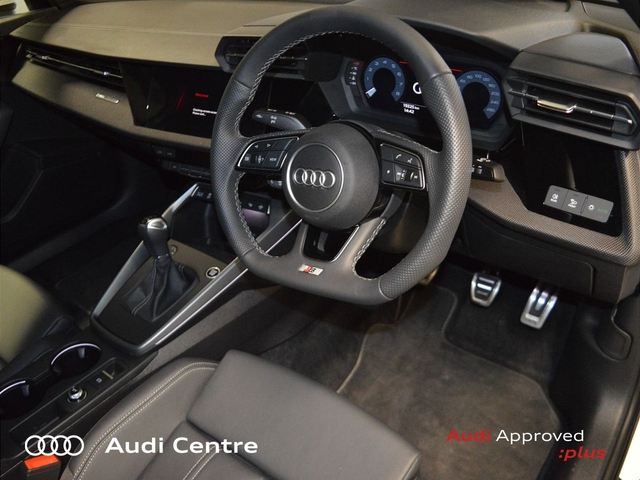 Audi A3 A3 SAL 30 TFSI 115HP S Line • MMI Radio Plus • Audi Drive Select • Cruise Control • 18"Alloys • High Gloss Pack • S-Line Body Styling • S-Line Exterior Pack • Ambient Lighting • Armrest • Automatic Air Conditioning • Climate Control • Electric Mirrors • Electric Windows • Front/Rear Floor Mats • Interior Mirror with Automatic Antiglare Action • 3 Spoke Sports Steering Wheel • Headlining in Black Cloth • ABS • Child Locks • Daytime Running Lights • Electronic Stability Programme (ESP) • Immobilizer • ISO Fix • LED Headlights • Multiple Airbags • Sport Suspension • Heated Mirrors • Fatigue Warning • Lane departure warning • Park assist with parking system plus • Phone Box Light • Audi Connect • Audi Smartphone Interface • USB charging ports