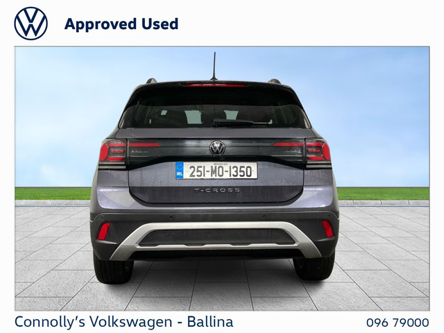 DESCRIPTION: Now available at Connolly’s VW Ballina: The Volkswagen T-Cross is a compact SUV that offers excellent versatility, comfort, and everyday usability. With its elevated driving position, efficient performance, and compact dimensions, it’s perfectly suited to both city streets and longer journeys. Inside, the T-Cross provides a practical and well-designed cabin with flexible space, while maintaining Volkswagen’s reputation for solid build quality and reliability, making it an ideal choice for drivers seeking a dependable and easy-to-drive SUV. KEY FEATURES • Digital cockpit display, putting navigation and driving info directly in your line of sight • Apple CarPlay & Android Auto • Reverse parking sensors, Making Parking Effortless • Alloy wheels • Cruise control, giving comfortable motorway driving • Climate Control DEALERSHIP BENEFITS Buying from Connolly’s Volkswagen Ballina gives you peace of mind with: Fully inspected vehicles Minimum 12-month warranty Flexible finance packages available Trade ins welcome Nationwide Delivery Available Call our sales team to arrange a test drive or a personalised walkaround video.