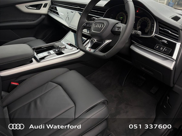 Audi Q7 60 Tfsi e Competition from €1025 per month • Multi-Function Steering Wheel • Audi Virtual Cockpit • Reverse Camera • Multiple Airbags • LED Headlights • ISO Fix • Front and Rear Park Assist • Lumbar Support • Leather Interior • Heated Seats • Headlining in Black Cloth • Front Sports Seats including Electric Lumbar Support • MMI SAT Nav • Electric Mirrors Heated Memory • Dual Climate control • Ambient Lighting • Metallic Paint • 20"Alloys • Quattro Four Wheel Drive • Cruise Control • Auto Handbrake • Adaptive Air Suspension • Audi Drive Select • Touchscreen Stereo