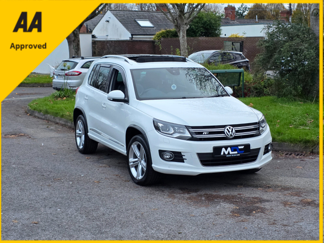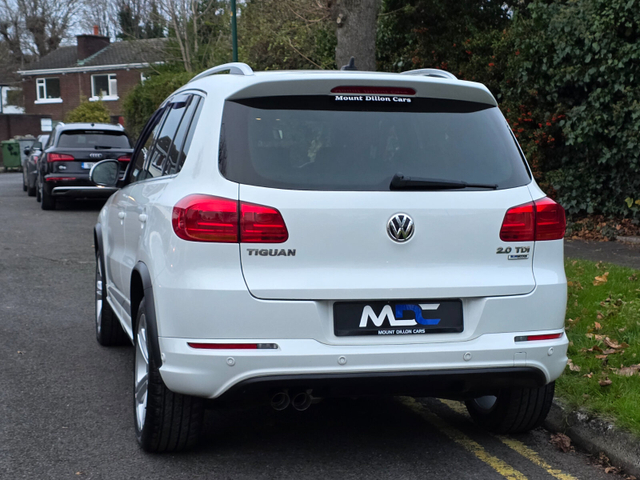 New Arrival To Mount Dillon Cars 2016 Volkswagen Tiguan R-Line 2.0 Tdi, 6 Speed Manual Comes With A New 2 Year NCT Tax 06/2026 Full VW Service History Timing Belt Replaced In VW Supplied With 2 Keys Low Mileage At 98mls/159kms R-Line Spec Includes: * Multifunction Steering Wheel * Cruise Control * Panoramic Sunroof * Xenon Headlamps * L.E.D DTRL's * Rear Privacy Glass * Front & Rear Park Assist * Parallel Park Assistance * Full Black Leather * Heated Seats * R-Line Embossed Headrests * Automatic Lights * Auto Hold * Electric Parking Brake * Alloy Wheels Very Well Maintained Example LC9A Pure White In Colour €15'450 Straight Sale Suitable Trade Ins Welcome At €16'450 For Anymore Information Please Contact Dylan On 0852007007 Air conditioning, Climate control, Dual zone climate control, Armrest, Keyless entry, Electrically adjustable seats, Electric side mirrors, Electric windows, Electric handbrake, Heated seats, Lumbar support, Multi-function steering wheel, Rain sensor, Spare tyre, Bluetooth, CD, 12v power outlet, Radio, USB connection (front), Cruise control, Hill hold assist, Navigation system, Front parking sensors, Rear parking sensors, Remote boot release, Roof rails, Start-stop system, Parking assistance, Alloy wheels, Leather interior, Leather steering wheel, Spoiler, Tinted windows, Auto lights (dusk sensor), Daytime running lights, ABS, Anti collision system, Emergency brake assist, Central locking, Remote central locking, Driver-side airbag, Immobilizer, Isofix, Tyre pressure monitor, Passenger-side airbag, Seat belt warning, Side airbag, Stability control, Traction control, Sport suspension