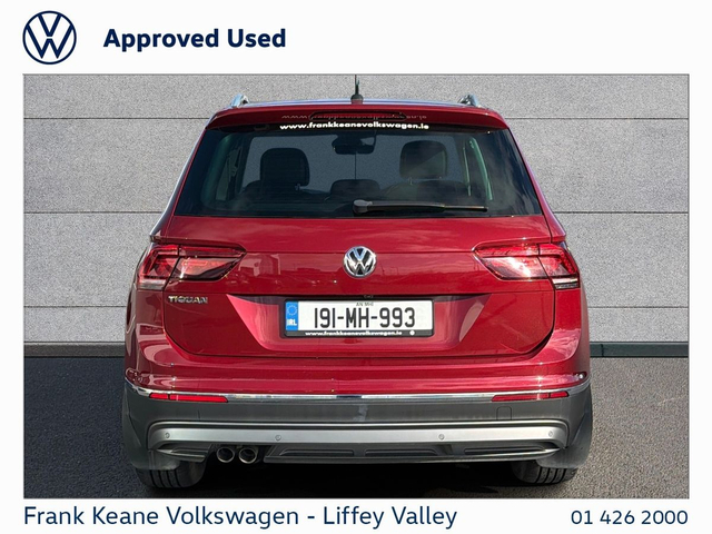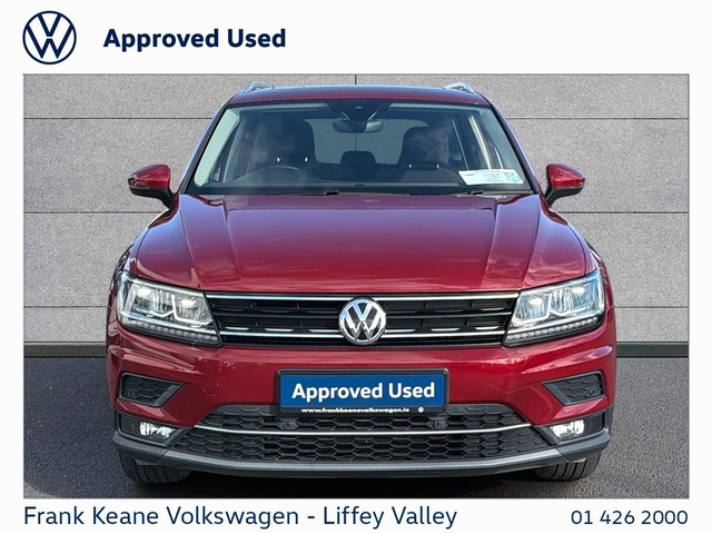 FRANK KEANE - Customer Driven Since '67. VW Tiguan at Frank Keane Volkswagen Liffey Valley, We have this 2019 Volkswagen Tiguan with just 90,760km Finished in Red Metallic with a Cloth Seat Interior. Specification that Includes • Sunroof, • Rear View Camera, • Apple Carplay & Android Auto, • 18" Kingston Alloy Wheels, • Climate Control, • Air-conditioning, • Front Heated Seats, • Electric Handbrake with Auto Hold, • Adaptive Cruise Control, • Digital Cockpit, • Electric tailgate, • Automatic Lights, • Folding Mirrors, • ISOFIX Child Seat Mounts, • and much more! Please contact our Sales Team today for a Personalized Video of this Car, Digital Part Exchange Valuations and Tailored Funding Options to meet your needs on 01-4262000 or email [email protected] Frank Keane Volkswagen offers the highest levels of value and customer experience across both sales and service. Located at Liffey Valley Motor Mall, we ensure all our used vehicles are prepared to the highest of standards and come with a minimum of 12 months warranty. Call us 01-4262000 to arrange an appointment with our Sales Team. FRANKKEANEVOLKSWAGEN.IE