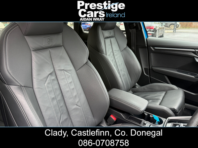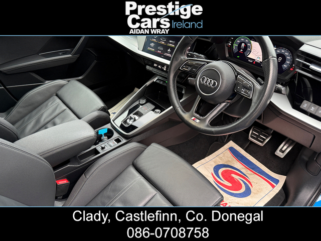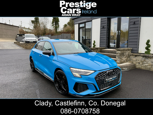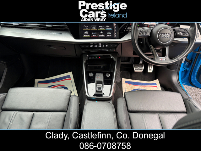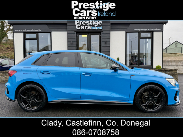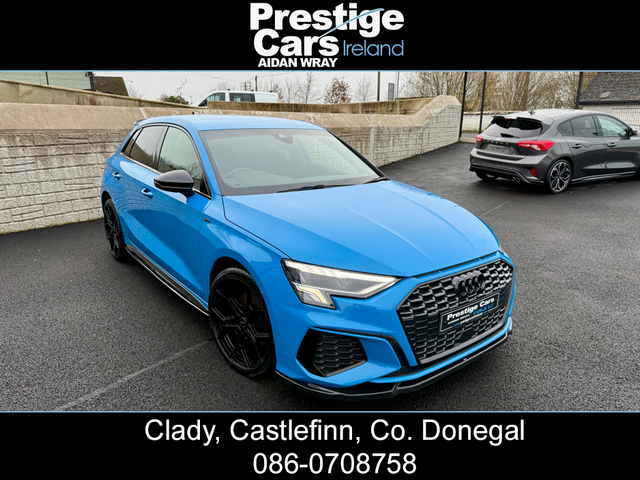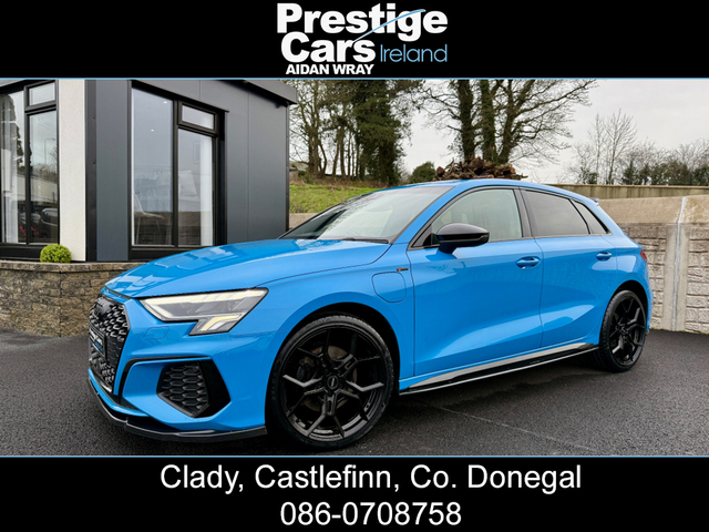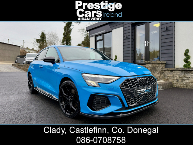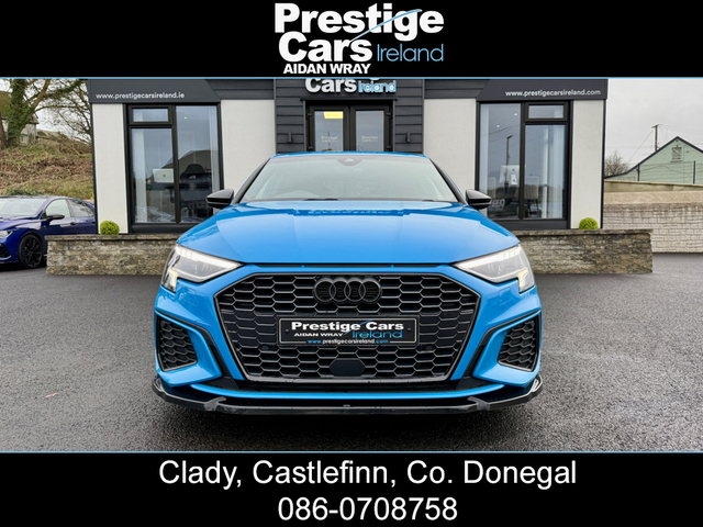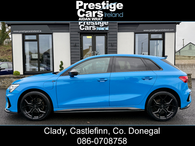 **EURO PRICE €25,695 ON IRISH REGISTRATION, REGISTERED TO YOUR COUNTY WITH NEW NCT** -IRISH ROAD TAX €170 EURO -PRICE FOR NI CUSTOMER ON NI REG 19,500 STG www.prestigecarsireland.ie (FREE DELIVERY ANYWHERE IN IRELAND) *TOP RATE ON EURO GIVEN* **BODY KIT/TURBO BLUE/BLACK EDITION STYLING/XENON/LED LIGHTS/AMBIENT LIGHTING/LEATHER/VIRTUAL COCKPIT/19" GLOSS BLACK ALLOYS** 2021 (211) AUDI A3 SPORT BACK 1.4 40 TFSI E S-LINE PETROL/ELECTRIC HYBRID, AUTOMATIC, **BLACK EDITION STYLING**, ONLY 89,000 MOTORWAY MILES WITH A FULL AUDI MAIN DEALER SERVICE HISTORY, (WARRANTED MILES), 1 COMPANY OWNER FROM NEW, **VIRTUAL COCKPIT**, COMFORT AND SOUND PACKAGE, FULL BLACK LEATHER INTERIOR WITH S-LINE LOGO, BIG TOUCH SCREEN COLOUR DISPLAY SAT-NAV, MULTI FUNCTIONAL WHEEL, ARM RESTS, IPOD/USB CONNECTION, USB CHARGING PORTS, BLUETOOTH, **AMBIENT LIGHTING PACK**, HIGH GLOSS PACKAGE, LED INTERIOR LIGHT PACK, AUDI CONNECT WITH AMAZON ALEXA INTEGRATION, VOICE CONTROL SYSTEM, APPLE CAR PLAY, AUDI DRIVE SELECT OPTIONS, AUDI PRE SENSE, AUTO HOLD, COMFORT DYNAMIC SUSPENSION, BANG AND OLUFSEN SOUND SYSTEM, DAB DIGITAL RADIO, FINISHED IN STUNNING TURBO BLUE, **BODY KIT INCLUDES GLOSS BLACK FRONT SPLITTER, SIDE SKIRTS, REAR DEFUSER, LIP SPOILER**, AUDI PARKING SYSTEM PLUS WITH FRONT AND REAR PARK SENSORS, XENON/LED FRONT AND REAR LIGHTS, DYNAMIC REAR INDICATORS, TURNING LIGHTS, FACTORY REAR PRIVACY GLASS, ELECTRIC FOLDING AUTO DIMMING/ADJUSTABLE/HEATED DOOR MIRRORS WITH KERB VIEW FUNCTION FOR PASSENGER SIDE, DAYTIME LED RUNNING LIGHTS, BRAND NEW 19" GLOSS BLACK ALLOY WHEEL PACKAGE,OPTIONAL EXTRA 1000 STG, AUTOMATIC GEARBOX WITH F1 PADDLES, 2 KEYS AVAILABLE AND ALL PAPERWORK PRESENT, MINT CONDITION INSIDE AND OUT, ANY INSPECTION WELCOME. EXCELLENT VALUE WITH HIGH SPEC. STUNNING EXAMPLE *(CAR IS FITTED WITH A BRAND NEW 20" ALLOY WHEEL PACKAGE,OPTIONAL EXTRA 1000 STG)* **ROI/NI/UK TRADE IN'S ACCEPTED @ TRADE PRICES** -CALL AIDAN ON 00447856438001 OR 0860708758 ***EXCELLENT FINANCE PACKAGES AVAILABLE TO NI/UK/ROI CUSTOMERS*** CREDIT & DEBIT CARDS ACCEPTED PRICE INCLUDES 3 MONTHS WARRANTY FULLY VALETED/DETAILED *ALL OUR STOCK IS PUT OUT TO A VERY HIGH STANDARD* ALL CARS COME FULLY SERVICED WITH NEW TIMING BELT & WATER PUMP KIT FITTED INCLUDING FULL CHECKOVER HPI PRINT OUT VIEWING AVAILABLE 7 DAYS A WEEK, OPEN LATE EVERY NIGHT PRESTIGE CARS IRELAND VIEW OUR FACEBOOK PAGE "PRESTIGE CARS IRELAND" 3 Month Warranty, Central Locking, Electric Windows, Airbag, Rear Spoiler, Privacy Glass, Centre Armrest, Multi-function steering wheel, Satellite Navigation, Traction Control, Metallic Paint, Anti-Theft System, Parking Sensors, Bluetooth, EBD, Isofix, Active Safety Braking / City Brake / Collision Alert, Stop/Start Button, 2 Keys, External Devices Connectivity, Cup holders, Remote boot/hatch/rear door release, Stability control