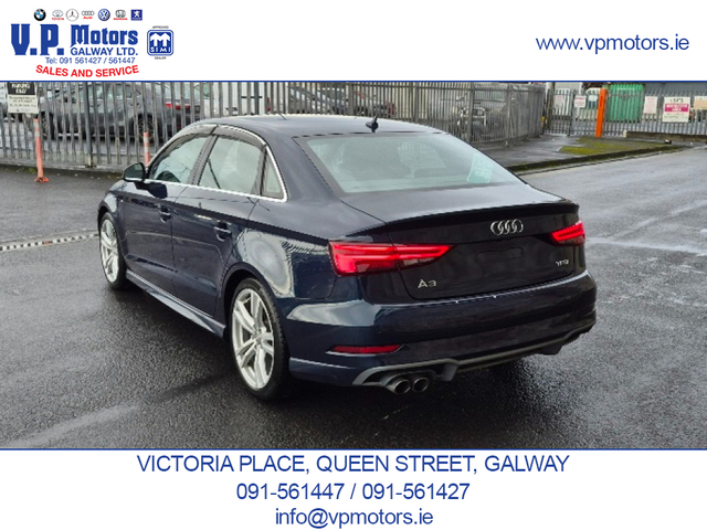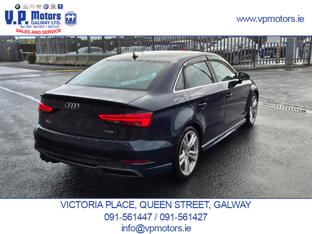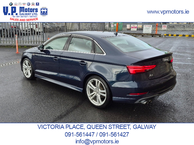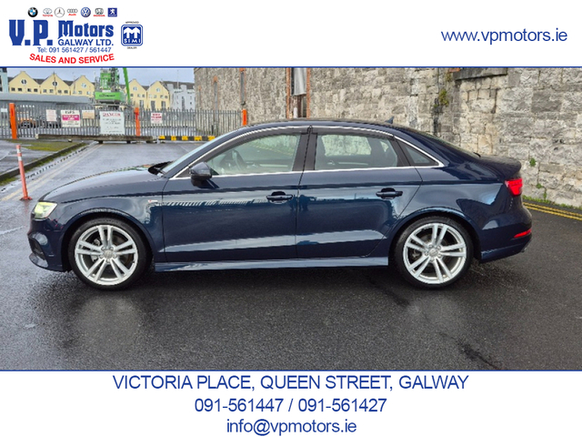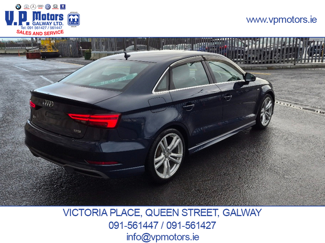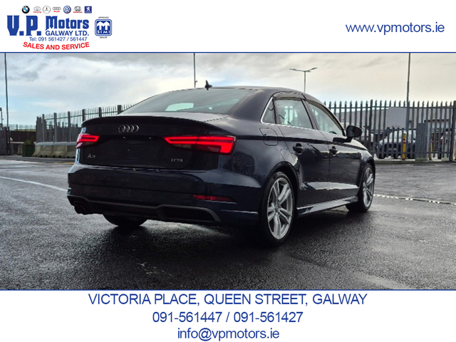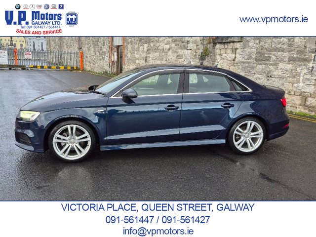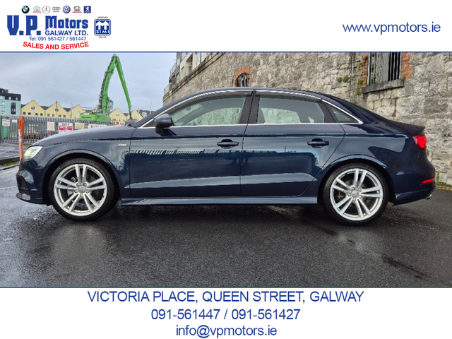 PREMIUM EDITION LOW MILEAGE HIGH SPECIFICATION Finished in Blue Metallic and having covered only 84,000 km, this Premium Edition S-Line is presented in superb, throughout. It features an exceptional factory specification with the latest Audi, comfort, technology, and safety systems. TECHNOLOGY & CONNECTIVITY Virtual Cockpit/digital dash. Satellite Navigation Front and Rear Dash Cameras Bluetooth Telephony Voice Command Dynamic Driving Modes SAFETY & DRIVER ASSISTANCE Automatic Brake Assist (ABA) Forward Collision Warning (FCW) Blind Spot Warning (BSW) Rear Cross Traffic Assist (RCTA) Adaptive Cruise Control (ACC) Reverse Camera Front and Rear Parking Sensors Hill Hold Assist INTERIOR COMFORT & CONVENIENCE Keyless Entry Push-Button Start Drivers Seat with multiple adjustments and lumbar support Passenger Seat with lumbar support Leather S-Line Steering Wheel with Multi-Function Dual-Zone Climate Control Air Conditioning Centre Armrest ISOFIX Child Seat Anchors Tinted Glass with UV Protection EXTERIOR & LIGHTING Xenon Headlights Adaptive Headlamp Function Auto-Retractable Headlamp Washers Rear LED Lamps Front Fog Lamps Cornering Lights Electrically Folding Door Mirrors Heated Door Mirrors 18 S-Line Alloy Wheels Twin Chrome Exhaust PERFORMANCE & EFFICIENCY Automatic Transmission Audi Fuel-Saving Technology ADDITIONAL FEATURES Auto Headlights Auto Wipers Two Keys RECENT MAJOR SERVICE COMPLETED New fully synthetic engine oil and filter New engine air filter New activated carbon filter New wiper blades New brake pads 4 quality continental tyres. Supplied with a 6 month / 15,000 km comprehensive warranty package Part exchange on your current vehicle is welcome. Contact Sales 091-561427 / 091-561447 www.vpmotors.ie www.vanhire.ie