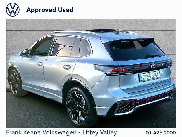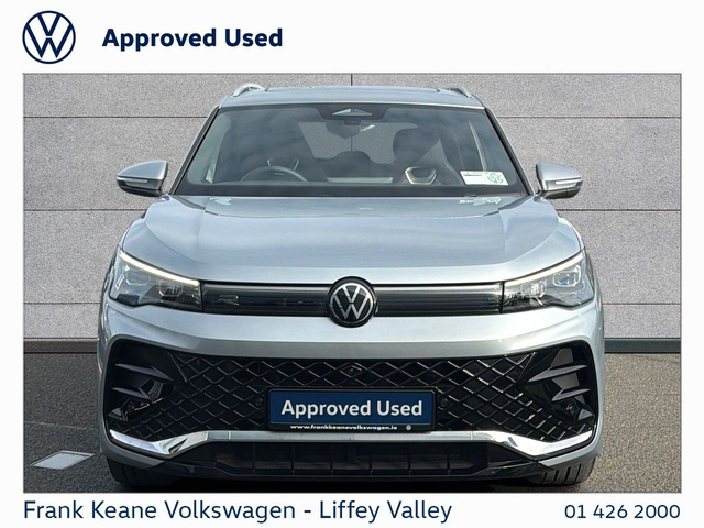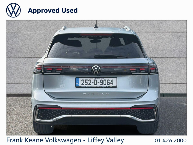 FRANK KEANE - Customer Driven Since '67. TIGUAN R-Line at Frank Keane Volkswagen Liffey Valley, We have this 2025 Volkswagen Tiguan R-Line with just 21,500km (in daily use - mileage to be confirmed) Finished in Dolomite Silver Metallic with an R-Line” Cloth Soul Black Seats. Experience complete confidence with the Frank Keane Volkswagen Optional Pre-Owned Vehicle Protection Pack — including a 24-month warranty, 3-year Return to Invoice (RTI) investment protection, and 3-year paint, glass, and upholstery protection with LifeShine. Premium cover, expertly designed to protect your vehicle and your investment. To Learn more, speak to one of our Sales Team in Frank Keane Volkswagen Liffey Valley today. Specification that Includes • Panoramic Sunroof, • Dynamic Light Assist, • 20" "York" Alloy Wheels, • 360 Park Camera, • Privacy Glass, • Blind Spot Indicators, • Silver Roof Rails, • 3-Zone Climate Control, • LED Plus Headlamps, • Illuminated Moulding Front Grille, • Ambient Lighting, • Black Headlining, • Heated Front Seats, • Heated Seats Rear, • Heated Steering Wheel, • Cornering Lights, • Sport Front Seats, • 12.9" Large Infotainment Display, • Digital Cockpit Dials, • Apple Carplay and Android Auto, • Rear View Camera, • ISOFIX Child Seat Mounts • and much more! Please contact our Sales Team today for a Personalized Video of this Car, Digital Part Exchange Valuations and Tailored Funding Options to meet your needs on 01-4262000 or email [email protected] Frank Keane Volkswagen offers the highest levels of value and customer experience across both sales and service. Located at Liffey Valley Motor Mall, we ensure all our used vehicles are prepared to the highest of standards and come with a minimum of 12 months warranty. Call us 01-4262000 to arrange an appointment with our Sales Team. FRANKKEANEVOLKSWAGEN.IE