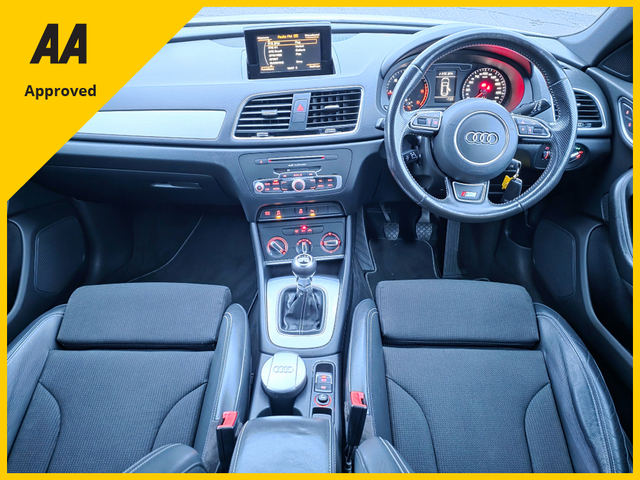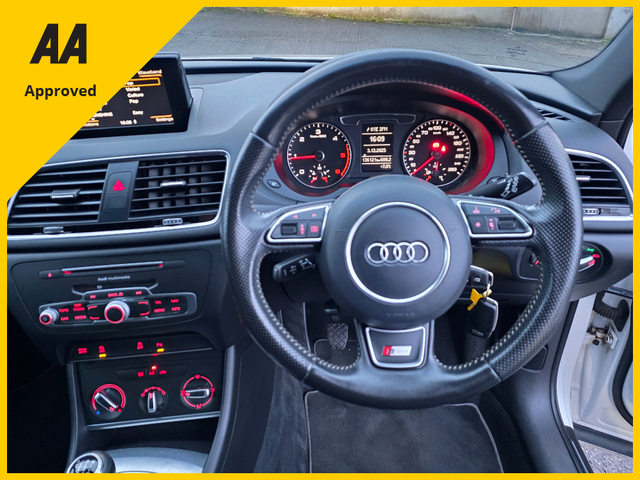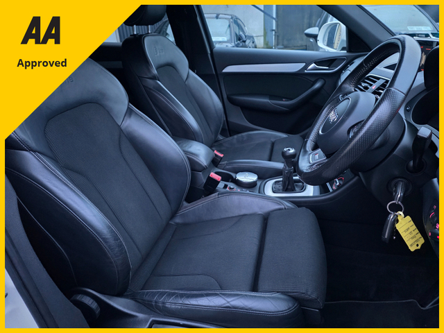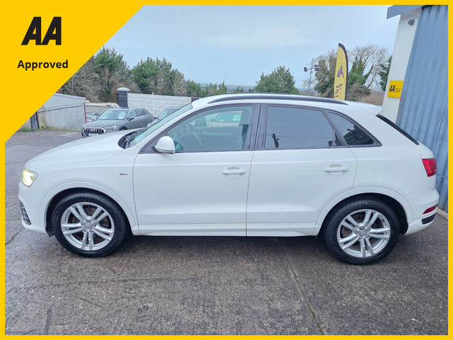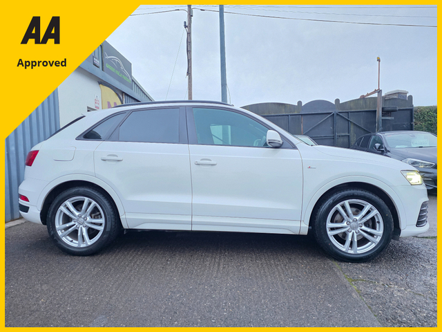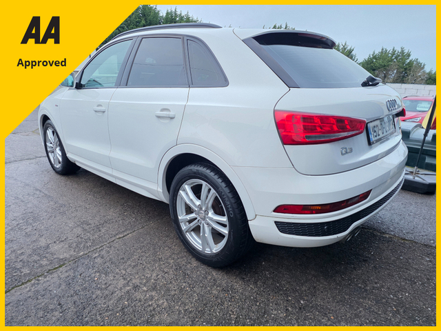 * 2015 AUDI Q3 S-LINE BLACK EDITION MODEL * 2.0 DIESEL WITH 6 SPEED MANUAL GEARBOX * COMES IN NICE METALLIC WHITE COLOUR * 18 INCH ALLOY WHEELS (4 NEW TYRES) * HALF LEATHER INTERIOR * PARKING SENSORS (FRONT AND REAR) * CRUISE CONTROL * AIR CONDITIONER * MULTI-FUNCTION STEERING WHEEL * BLUETOOTH CONNECTION * IRISH CAR FROM NEW * ONLY TWO PREVIOUS OWNERS * SERVICE HISTORY * NCT TEST TILL 11/26 * LOW TAX BRACKET € 270 PER ANNUM * 84582 MILES / 136121 KM * 2 ORIGINAL KEYS * CAR LOOKS AND DRIVES VERY WELL * ANY INSPECTION WELCOME * We are proud to be an AA approved and 5 star rated dealer. * All our cars have been through a 101-point AA approved inspection and comes with 12 months free AA membership, roadside assistance and breakdown. * This car has been checked by motor check.ie (full history report from new included HPI clear) to ensure peace of mind for the customer and to in still confidence when purchasing a pre-owned vehicle * All our cars come serviced, health checked and valeted * 6 months warranty included * Trade-ins welcome * For more information or arrange viewings please call 0857444451 * Due to a high turnover in stock, we recommend that you contact our sales team to make sure the car is still available and to make an appointment