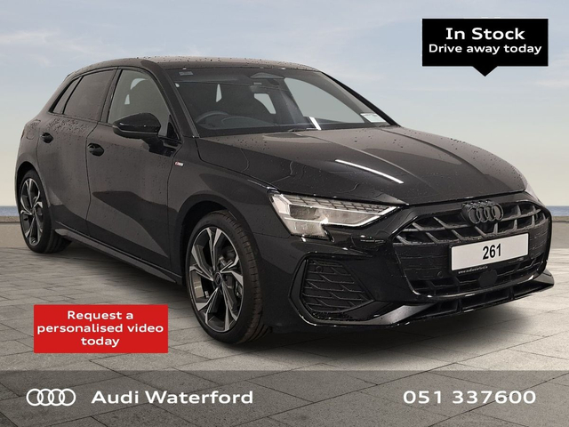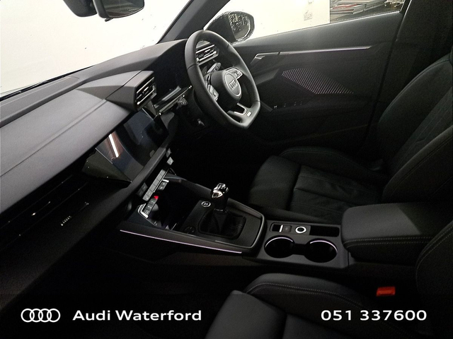 Audi A3 A3 Sportback 30 TDI 115HP S line from €468 per month • Bluetooth Interface • Touchscreen Stereo • Audi Drive Select • Audi Stop/Start • Adaptive Cruise Control • Auto Handbrake • Power Assisted Steering • 18"Alloys • Black Styling Pack • S-Line Exterior Pack • Space Saver Spare Wheel • Air Conditioning • Ambient Lighting • Button Start-Stop • Climate Control • Multi-Function Steering Wheel • Privacy Glass • Headlining in Black Cloth • Heated Seats • Leather Interior • Lumbar Support • Memory Function Driver seat • ABS • Reverse Camera • Audi Connect • Audi Lane Assist • Audi Smartphone Interface • Audi Virtual Cockpit