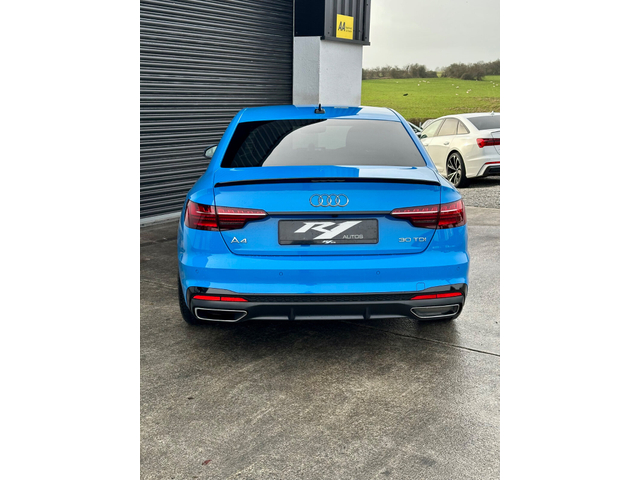 2022 AUDI A4 S LINE BLACK EDITION SPEC 2.0 TDI 190BHP DIGITAL DASH 7 SPEED AUTO S TRONIC FINISHED IN VERY RARE AND SOUGHT AFTER TURBO BLUE WITH HALF BLACK LEATHER SEATS DIGITAL DASH ONLY COVERED 58K MILES FROM NEW FRESHLY SERVICED 2 REMOTE KEYS ALL BOOKS MANUALS ETC NCT NEW SPEC INCLUDES: DIGITAL DASH BLACK EDITION STYLE PACK ALL USUAL S LINE REFINEMENTS UPGRADED ALLOYS AND TYRES FULL BLACK PACK STYLING HALF LEATHER HEATED SEATS GLOSS BLACK FRONT SPLITTER GLOSS BLACK REAR BOOT SPOILER MULTIFUNCTIONAL STEERING WHEEL FRONT AND REAR PARKING SENSORS AUTO LIGHTS ELECTRIC HANDBRAKE CRUISE CONTROL CLIMATE CONTROL BLUETOOTH PLUS ALL USUAL EXTRAS SERIOUS VALUE FOR MONEY AT €39995 INCLUDING ALLOYS TRADES INS CONSIDERED RING FOR ANYMORE DETAILS OR TO ARRANGE A VIEWING 0894239084 NATIONWIDE WARRANTY IS EXTENDABLE TO 6 MONTHS 12 MONTHS OR 24 MONTHS FREE BREAKDOWN ASSISTANCE WITH MOST WARRANTIES RING ANYTIME TO ARRANGE A VIEWING IF NO ANSWER PLEASE WHATSAPP OR TEXT AND I WILL CALL YOU BACK VIEWING STRICTLY BY APPOINTMENT ONLY ANYTIME CHECK OUT R1 AUTOS ON SOCIALS CARD PAYMENT TO SECURE DEPOSIT TRADE INS CONSIDERED FULL CLEAN HISTORY CHECK INDOOR VIEWING AVAILABLE WARRANTY AVAILABLE DELIVERY AVAILABLE WALK AROUND VIDEOS AVAILABLE