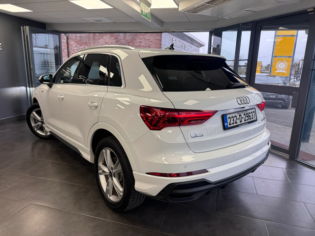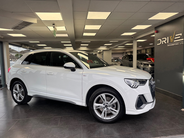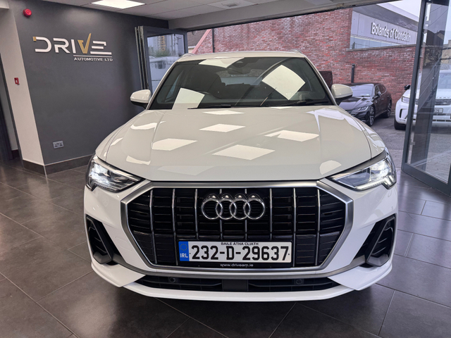 ***232d Audi Q3 45 TSI Hybrid S-Line ***Automatic DSG ***Alpine White/ Suede Leather Interior ***Heated Seats ***Reverse Camera ***Privacy Glass ***Climate Control ***Cruise Control ***Xenon Lights ***Power Tailgate ***Power Folding Mirrors ***18 Alloys ***Remainder of Audi Warranty ***Full Service History ***Great Value €39900 Drive Automotive Ltd Central Locking, Electric Windows, Airbag, Cruise Control, Rear Spoiler, Centre Armrest, Multi-function steering wheel, Roof Rails, Traction Control, Metallic Paint, Parking Sensors, Bluetooth, Isofix, Apple Car Play, Android Auto, Active Safety Braking / City Brake / Collision Alert, Stop/Start Button, External Devices Connectivity, Cup holders, Remote boot/hatch/rear door release, Stability control