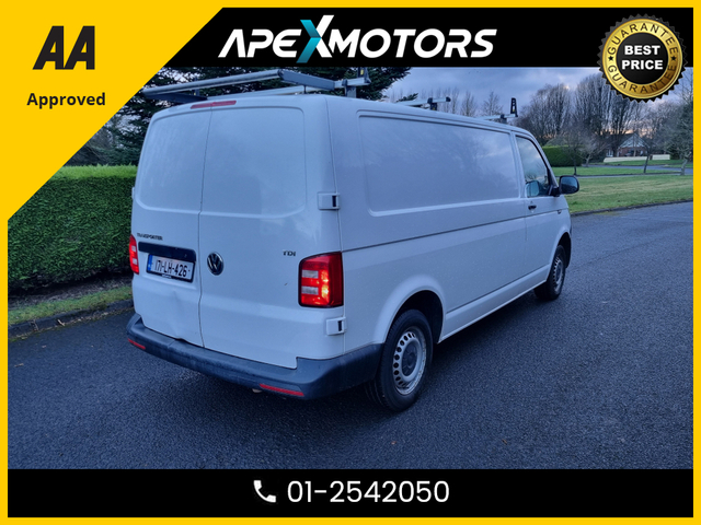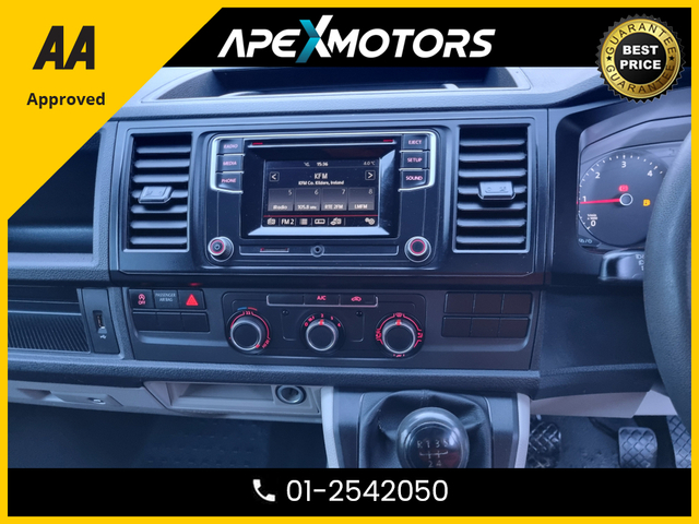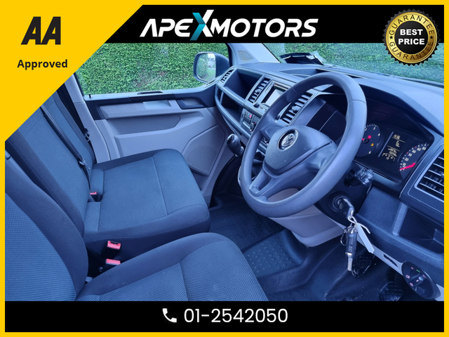 Welcome to APEXMOTORS.ie , an AA APPROVED INDEPENDENT DEALERSHIP, with all the Features you expect from the Franchise Dealerships We are one of Irelands Leading Providers of Quality Approved Used Cars and Light Commercials, All Vehicles are fully Inspected by AA Approved Mechanics , Come Fully Serviced and Professionally Valeted, All Vehicles are Cartell History Checked and Greenlight Verified, and Sold with Warranty, We consider ourselves best priced in the Market Nationwide, Full Finance options are also available, we work with all provider to offer you the Best solutions for your needs * FINANCE ARRANGED * T6 PVL 2800KG TDI 102HP MANUAL 5DR * PRICE IS PLUS VAT * VAT INVOICE AVAILABLE * 3-SEATS * NEW CVRT JAN-27 * IMMACULATE * STAMPED SERVICE HISTORY * AA APPROVED * 101 SAFETY CHECKLIST * 12-MONTH ROADSIDE ASSIST * VERY CAREFUL OWNER * CARTELL HISTORY CHECKED * FULLY SERVICED * TRADE IN WELCOME * www.apexmotors.ie * CALL 01-2542050 or * WHATTSAPP 087-18-777-81 * WE ARE AN *AA* APPROVED USED CAR DEALERSHIP * ALL CARS GO THROUGH *AA APPROVED* 101 POINT SAFETY CHECKLIST * EXCESS 300 VEHICLES IN STOCK * ALL CARS IN FIRST CLASS CONDITION INSIDE & OUT * ALL VEHICLES ARE NCT TESTED, SERVICED, PROFESSIONALLY VALETED * COMPREHENSIVE AND EXTENDED WARRANTY AVAILABLE * CARTELL DOCUMENTED VERIFICATION * NATIONWIDE DELIVERY AVAILABLE * LOCATED -- EXIT-6 M50 (EIRCODE A86 YC84) * PLEASE CALL OUR SALES TEAM TODAY 01-2542050 or WHATTSAPP 087-1877781 * MON-FRI 2-6PM (Morning by appointment) and ALL DAY SAT 9-5PM * www.ApeXmotors.ie * Because we value your Business.. ABS, Air Conditioning, Air bags, Anti theft system, Bluetooth, Bluetooth Radio/CD, Bluetooth/Tel, Bulkhead (full), CD Player, Captain Seats, Central locking, Door - LHSD, Door - Twin side door, Driver Airbag, Electric mirrors, Electric windows, Electronic brakeforce distribution (EBD), FSH, Immobiliser, Internal shelving, Ply lined, Power steering, Rear Loading Doors, Remote Central Locking, Remote Control Central Locking, Traction control (ASR), Warranty