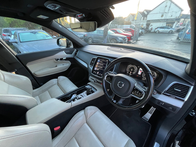 FINANCE ARRANGED - TRADE IN's WELCOME Immaculate Volvo XC90 R-Design finished in an elegant, sporty design that perfectly blends Scandinavian luxury with performance and practicality. With features including heated seats, reverse camera, panoramic sunroof, this XC90 delivers smooth acceleration, excellent fuel economy, and confident handling in all conditions. The R-Design trim adds a bold, athletic look with premium styling upgrades throughout. To arrange a viewing and test drive call our sales team on 018256184 6 Month Warranty, Central Locking, Electric Windows, Airbag, Fog Lamps, Rear Spoiler, Privacy Glass, Centre Armrest, Multi-function steering wheel, Roof Rails, Satellite Navigation, Traction Control, Anti-Theft System, Parking Sensors, Bluetooth, EBD, Isofix, History Checked, Active Safety Braking / City Brake / Collision Alert, Stop/Start Button, Touch Screen Media Control, External Devices Connectivity, Cup holders, Remote boot/hatch/rear door release, Stability control