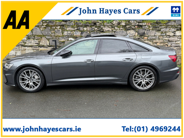 **We operate appointment only for viewings, please make contact to arrange a test drive thank you**Absolutely beautiful 2021 Audi A6 50TFSi Quattro 4WD Black Edition with panoramic roof and upgraded 20" alloys. Looks stunning in Daytona grey with black S Line embossed leather interior and completely shadowlined. Only 55000 kms from new with full Audi service history. Beautiful car to drive. Fully prepared for sale. SIMI and AA registered dealer. 12 month comprehensive warranty with option to increase to 24 months. New NCT and 4 new tyres fitted. Appointents for viewings on 0879068112 or [email protected] please. Great specification throughout with S Line embossed full leather seating, leather multi function steering wheel, daytime running LED headlights, apple car play, android auto, cruise control, park assist, USB connect with full media play, centre armrest, Audi PHEV Hybrid technology, sun protect rear glassm panoramic roof, memory function fully electric seating, Audi Pre Sense, iSofix, sun protect rear glass, Google maps A generally all round beautiful condition Audi A6 S Line Black Edition prepared to the tried and trusted John Hayes Cars level of attention given to all of our vehicles. John Hayes Cars, a very well known and trusted family dealer in high quality vehicles since 1986 and based in Rathmines since 1998. For extra peace of mind for our customers we also provide a free car history report for all of our vehicles. Thank you. 12 Month Warranty, 2 Keys