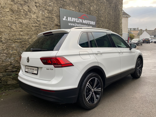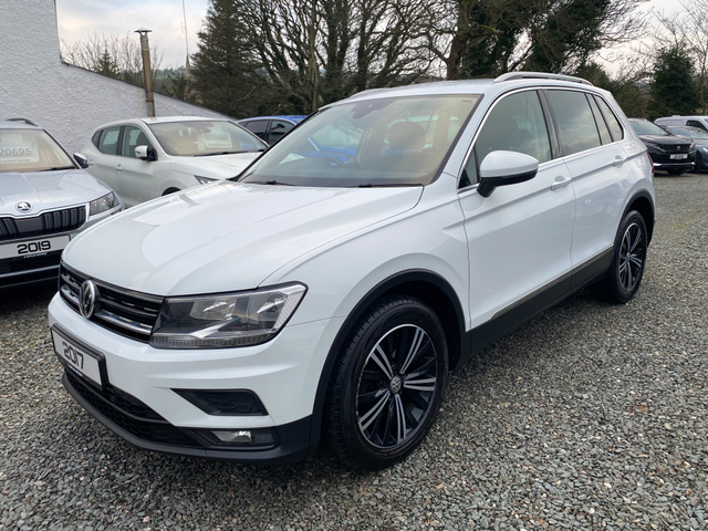 Aug 2017 Volkswagen Tiguan 2.0 TDi SE 150 bhp Price includes VRT, NOX charge, Duties paid, South number plates fitted 12 months AA roadside assist/recovery motorcheck.ie printout Comes fully serviced along with a new water pump and timing belt and a 3 Month Warranty Nationwide delivery €149 Apply for finance on our website - jhavlinmotors.com Contact Colum on 074 93 85101. Whatsapp 087 767 4 767 Spec includes 3 Month Warranty, Air Conditioning, Central Locking, CD Player, Electric Windows, Airbag, Alloy Wheels, Cruise Control, Fog Lamps, Immobiliser, Privacy Glass, Automatic Wipers, Automatic Lights, Centre Armrest, Multi-function steering wheel, Roof Rails, Traction Control, Metallic Paint, Anti-Theft System, Parking Sensors, Bluetooth, New Timing Belt, Remote Central Locking, EBD, Six speed transmission, Isofix, Hill holder, History Checked, Finance Checked, Apple Car Play, Android Auto, Front Parking Sensors, Space Saver Spare Wheel, Active Safety Braking / City Brake / Collision Alert, Stop/Start Button, Touch Screen Media Control, Daytime Running Lights, External Devices Connectivity, Cup holders, Remote boot/hatch/rear door release, Stability control