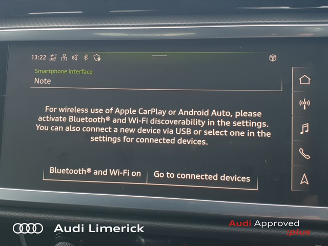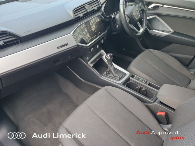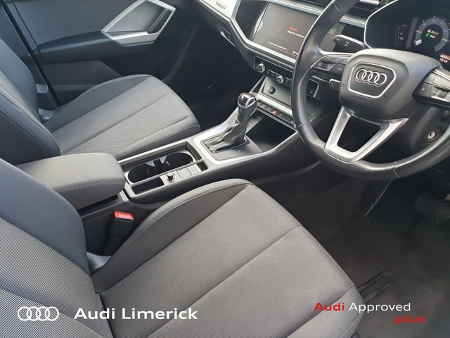 Audi Q3 45 TFSI E S Tronic SE + Heated seats • Audi Music Interface • Audi Sound System • Bluetooth Interface • Touchscreen Stereo • Audi Drive Select • Audi Stop/Start • Cruise Control • 18"Alloys • Body Coloured Door Mirrors • Chrome Exterior Package • Metallic Paint • Spoiler • Air Conditioning • Armrest • Climate Control • Colour Driver Information system • Dual Climate control • Electric Windows • Front Footwell Illumination • Front/Rear Floor Mats • Illuminated Vanity Mirror • Rake/Reach Adjustable Steering Column • Heated Seats • Leather Steering Wheel • ABS • Active Lane Assist • Child Locks • Daytime Running Lights • Front and Rear Park Assist • Hill Descent Assist • ISO Fix • Light and Rain Sensor • Rear Park Assist • Reversing Sensors • Remote Central Locking • Apple CarPlay • Audi Smartphone Interface • 7 Speed S-Tronic • Audi Lane Assist • Audi Smartphone Interface • Audi Virtual Cockpit