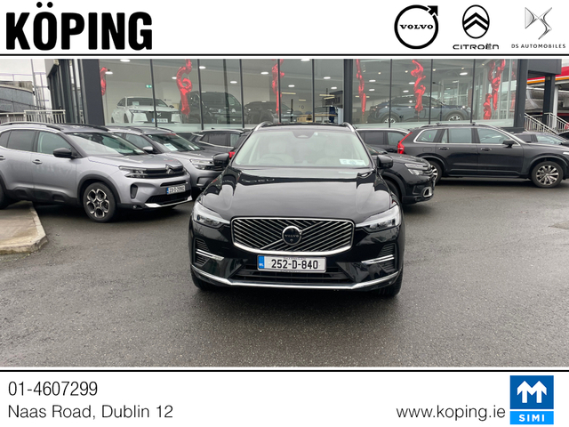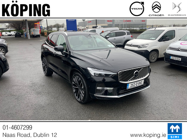 This Volvo XC60 plug in hybrid is immaculate it has a high level of specification and special features to include upgraded Alloys and massage function seats. This car has been ours since first registration it comes with manufacturers warranty and road side assistance. Please call Declan at 014607299. Full Service History, Trade in accepted, Air Conditioning, Central Locking, Immaculate condition, Electric Windows, Airbag, Alarm, Alloy Wheels, Cruise Control, Electric Mirrors, Electric Seats, Fog Lamps, Immobiliser, Rear Spoiler, Full Leather, Heated Seats, Automatic Wipers, Automatic Lights, Centre Armrest, Luggage Cover, Multi-function steering wheel, Roof Rails, Climate Control, Satellite Navigation, Traction Control, Metallic Paint, Multiple Air Bags, Side Impact Protection, Anti-Theft System, Parking Sensors, Bluetooth, Remote Central Locking, EBD, Electronic handbrake, Folding rear seats, Isofix, Hill holder, History Checked, Finance Checked, Apple Car Play, Android Auto, Mirror Link, Heated Front Seats, Reversing Camera, Motorised Tailgate, Front Parking Sensors, Lane Departure Warning, Blind Spot Monitoring System, Speed Sign Recognition & Recommendation, Active Safety Braking / City Brake / Collision Alert, Heated Steering Wheel, Adaptive Cruise Control, Stop/Start Button, Touch Screen Media Control, Drive Mode Selector, Dual Zone Climate Control, Daytime Running Lights, Manufacturer Warranty Remaining, 2 Keys, External Devices Connectivity, Cup holders, Stability control