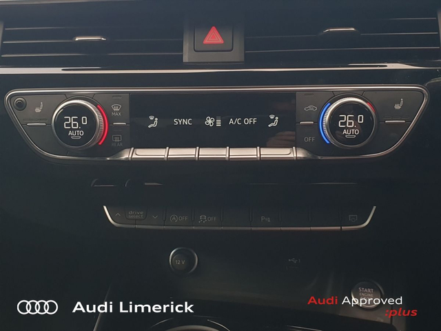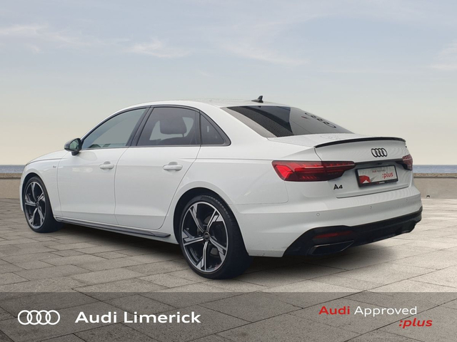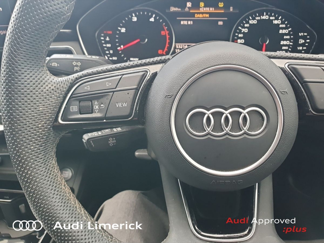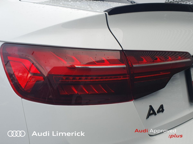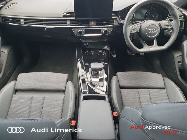 Audi A4 35 TDI 163HP S Tronic S line Competition model • Audi Music Interface • Audi Sound System • Bluetooth Interface • Touchscreen Stereo • Audi Drive Select • Audi Stop/Start • Auto Handbrake • Cruise Control • Power Assisted Steering • 19"Alloys • Black Styling Pack • High Gloss Black Grille • High Gloss Pack • Metallic Paint • S-Line Body Styling • S-Line Exterior Pack • Spoiler • Tinted Windows • Air Conditioning • Ambient Lighting • Armrest • Button Start-Stop • Climate Control • Colour Driver Information system • Dual Climate control • Electric Mirrors • Electric Windows • Front Footwell Illumination • Front/Rear Floor Mats • LED Interior Light Pack • Multi-Function Steering Wheel • Privacy Glass • Rake/Reach Adjustable Steering Column • Split Fold Rear Seats • Tinted Privacy Glass to Rear of B-Post • 3 Spoke Sports Steering Wheel • Headlining in Black Cloth • Heated Seats • Leather Steering Wheel • ABS • Active Lane Assist • Alarm • Anti-Lock Brake System • Child Locks • Daytime Running Lights • Electronic Stability Programme (ESP) • Front and Rear Park Assist • Immobilizer • ISO Fix • LED Headlights • Light and Rain Sensor • Multiple Airbags • Reverse Camera • Front and Rear Park Sensors • Voice control • Apple CarPlay • Audi Smartphone Interface • Audi Lane Assist • Led Headlights • Rear Dynamic Indicators • Audi Lane Assist • Reverse Camera