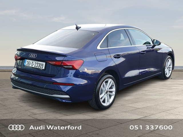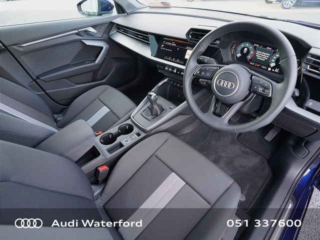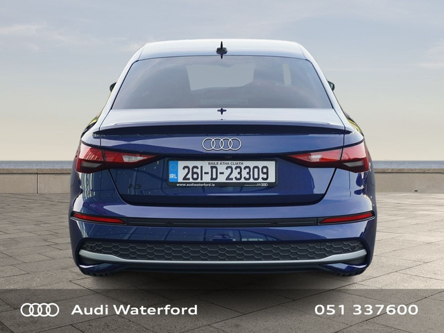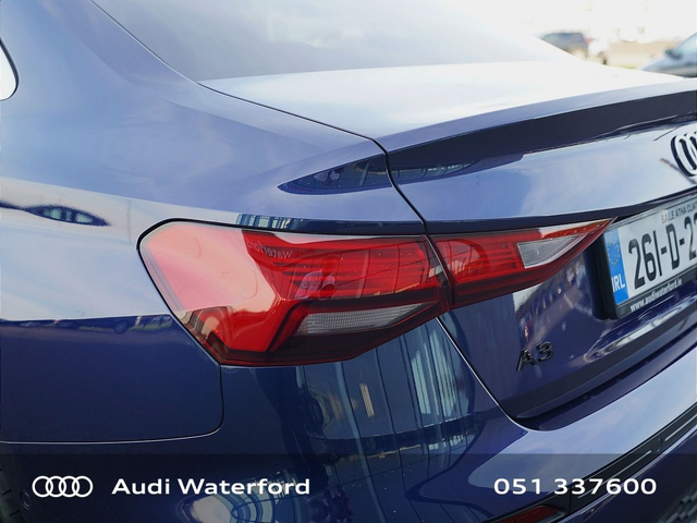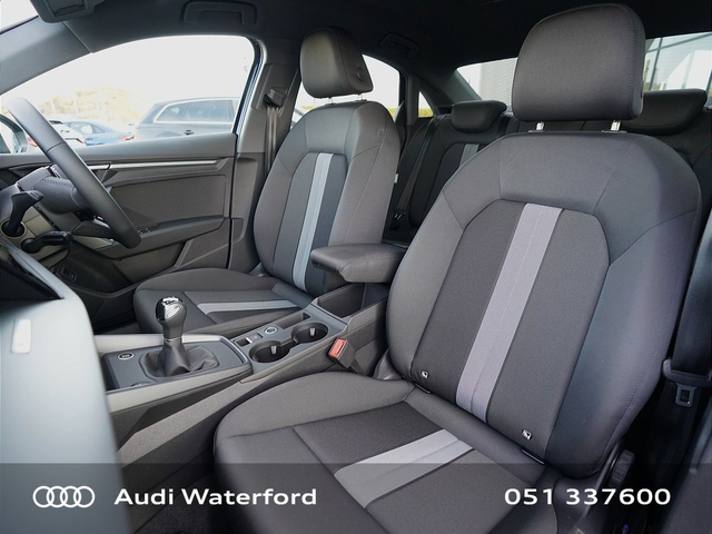 Audi A3 Saloon 30 TDI 115HP SE from €498 per month • Body Coloured Door Mirrors • Audi Smartphone Interface • Audi Virtual Cockpit • Keyless Go • Pre sense city • USB charging ports • Button Start-Stop • MMI Radio Plus • Audi Drive Select • Audi Stop/Start • Adaptive Cruise Control • Auto Handbrake • Power Assisted Steering • 17"Alloys • Audi Lane Assist • Metallic Paint • S-Line Body Styling • Tinted Windows • Air Conditioning • Armrest • Bluetooth Interface • Climate Control • Drivers Information System • Dual Climate control • Electric Mirrors • Electric Windows • Front/Rear Floor Mats • LED Interior Light Pack • Onboard Computer • Split Fold Rear Seats • Tinted Privacy Glass to Rear of B-Post • 3 Spoke Leather Multifunction S-Line Steering Wheel • Heated Seats • Leather Interior • Leather Steering Wheel • Lumbar Support • ABS • Active Lane Assist • Alarm • Auto Lights and Wipers • Child Locks • Daytime Running Lights • Front and Rear Park Assist • Hill Hold Assist • Immobilizer • ISO Fix • LED Headlights • Light and Rain Sensor • Multiple Airbags • Reverse Camera • Reversing Sensors • Warning Triangle • Front and Rear Park Sensors • Voice control • Audi Connect