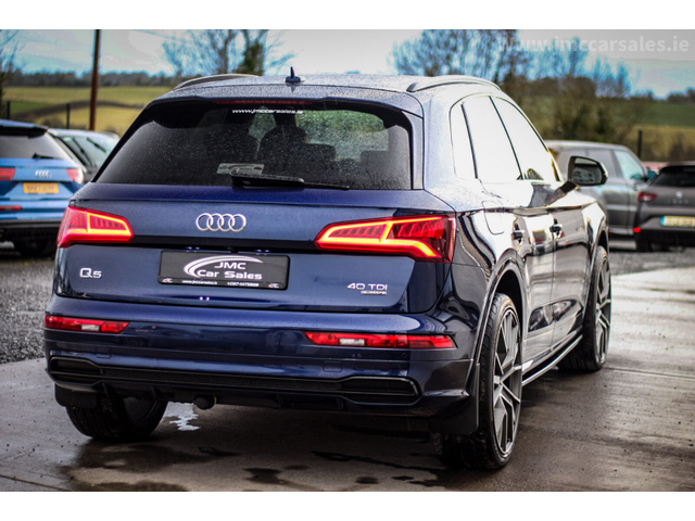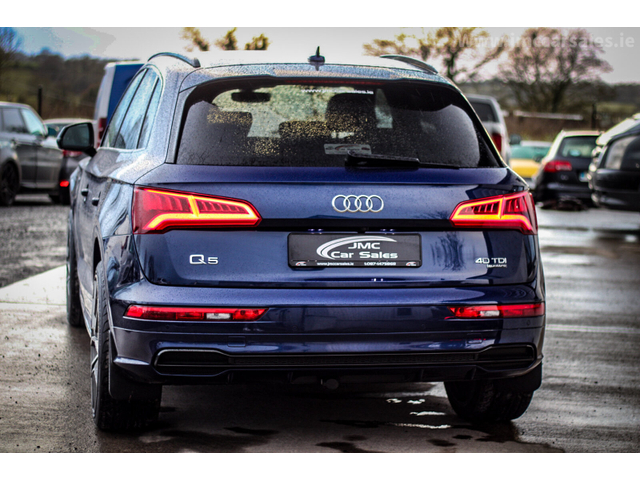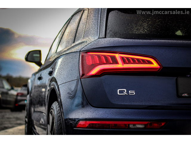 2019 AUDI Q5 40TDI QUATTRO S-LINE AUTOMATIC S-TRONIC GEARBOX BLACK STYLING TECH PACK GOOD SERVICE HISTORY ONLY COVERED 70K MILES FROM NEW SPEC AS FOLLOWS 22” ALLOY WHEELS BLACK HALF LEATHER INTERIOR S LINE STEERING WHEEL DIGITAL DASH HEATED FRONT SEATS CLIMATE CONTROL XENON LIGHTS LED TAIL LIGHTS AUTO LIGHTS AUTO WIPERS ELECTRIC WINDOWS BT AUDIO SAT NAV PARKING SENSORS ISO FIX AIR CONDITIONING FLAPPY PADDLES USB PORTS MULTIFUNCTIONAL STEERING WHEEL AND MUCH MUCH MORE CAR COMES FULLY SERVICED PROFESSIONAL VALETED NATIONWIDE DELIVERY SERIOUS VALUE FOR MONEY AT STRAIGHT SALE €37,995 TRADE IN € 38,995 WALK AROUND VIDEO AVAILABLE FULL HISTORY CHECK AVAILABLE WARRANTY OPTIONS AVAILABLE VIEWING 7 DAYS A WEEK BY APPOINTMENT ONLY VISIT OUR WEBSITE WWW.JMCCARSALES.IE CALL SALES TODAY ON 044 9206009 CALL JASON TODAY ON 0871475868 *FINANCE OPTIONS AVAILABLE*