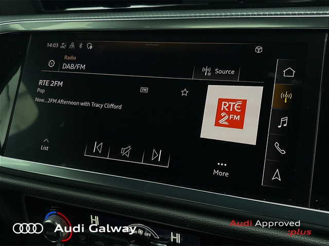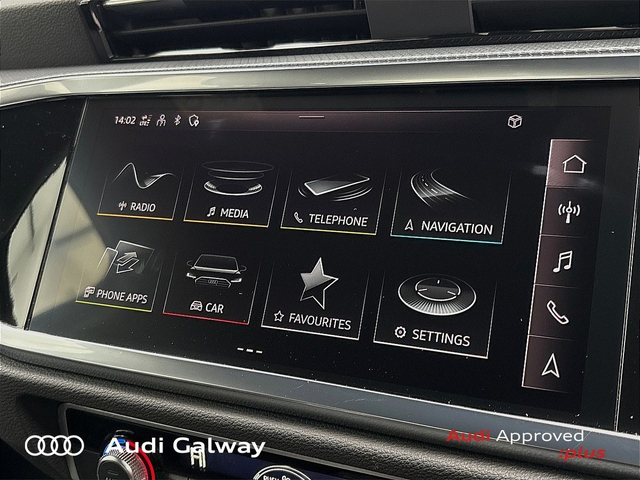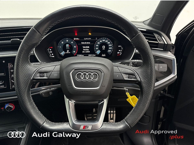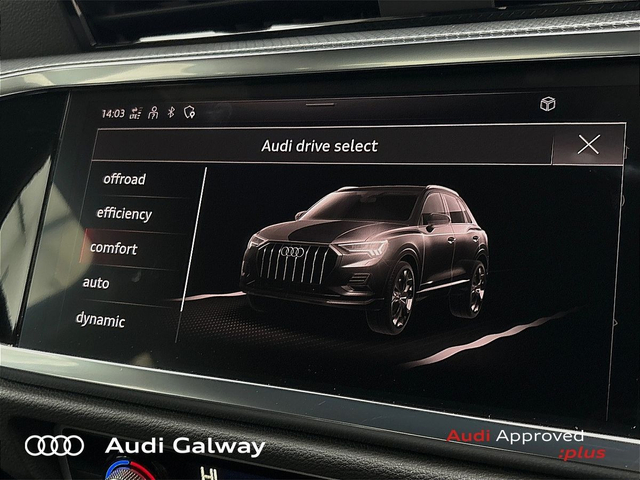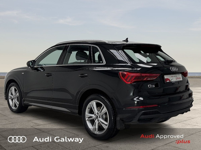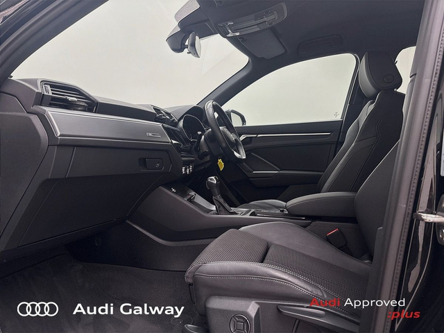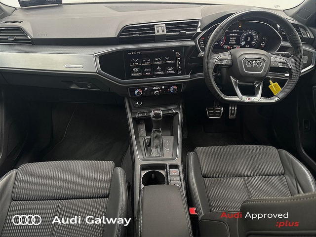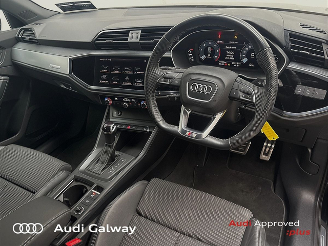 Audi Q3 €389 p/m 35 TDI 150HP S-LINE A/T • Audi Music Interface • Audi Sound System • Audi Sound System with 10 speakers • Bluetooth Interface • Hands Free Kit • MMI Radio Plus • MMI SAT Nav • Mobile Device Interface (Media-In) • Mobile Phone Preparation-Bluetooth • Satelitte Navigation • Touchscreen Stereo • 18"Alloys • Body Coloured Door Mirrors • Chrome Exterior Package • Chrome Roof Rails • Front Fog Lights • Headlight Washers • High Gloss Black Grille • High Gloss Pack • Metallic Paint • S-Line Body Styling • S-Line Exterior Pack • Spoiler • Tinted Windows • Air Conditioning • Armrest • Automatic Air Conditioning • Climate Control • Drivers Information System • Dual Climate control • Electric Mirrors • Electric Mirrors Heated Memory • Electric Windows • Front/Rear Floor Mats • Interior Lighting Pack • Onboard Computer • Split Fold Rear Seats • Tinted Privacy Glass to Rear of B-Post • Upholstery and Seats • 3 Spoke Leather Multifunction S-Line Steering Wheel • 3 Spoke Sports Steering Wheel • Front Sports Seats including Electric Lumbar Support • Headlining in Black Cloth • Heated Seats • Leather Interior • Leather Steering Wheel • Lumbar Support • ABS • Alarm • Anti-Lock Brake System • Daytime Running Lights • Front and Rear Park Assist • Front Side Airbags with Curtain Airbags • ISO Fix • LED Headlights • Light and Rain Sensor • Multiple Airbags • Rear Park Assist • Reverse Camera • Reversing Sensors • Xenon Headlights • Xenon with LED Daytime Running Lights • 12V Power Points in Front + Rear Centre Consoles • Diesel Particulate Filter • Speed Limiter