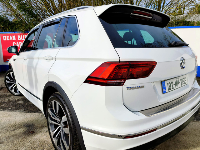 Check Out Our Google Reviews STRAIGHT SALE PRICE €23900 TRADE IN PRICE €24900 €122 Per WEEK APPLY FOR FINANCE ON LINK BELOW https//www.deanburkecars.ie/finance?adidkXmXj&deposit2875&term60 2018 Tiguan R Line 4 Motion Sunroof JUST FRESHLY SERVICED ALL BOOKS MANUALS ETC LOW OWNERS SPEC INCLUDES ALL USUAL R Line REFINEMENTS XENON HEAD LIGHTS BLUETOOTH PARKING SENSORS SAT NAV AIR CONDITIONING Cruise CONTROL PLUS ALL USUAL EXTRAS RING ANYTIME TO ARRANGE A VIEWING IF NO ANSWER PLEASE WHATSAPP OR TEXT AND I WILL CALL YOU BACK VIEWING STRICTLY BY APPOINTMENT ONLY ANYTIME CARD PAYMENT TO SECURE DEPOSIT TRADE IN CONSIDERED FULL CLEAN HISTORY CHECK INDOOR VIEWING AVAILABLE DELIVERY AVAILABLE WALK AROUND VIDEOS AVAILABLE Central Locking, Electric Windows, Airbag, Fog Lamps, Privacy Glass, Centre Armrest, Multi-function steering wheel, Roof Rails, Traction Control, Metallic Paint, Parking Sensors, Bluetooth, EBD, Isofix, Active Safety Braking / City Brake / Collision Alert, Stop/Start Button, External Devices Connectivity, Cup holders, Remote boot/hatch/rear door release, Stability control