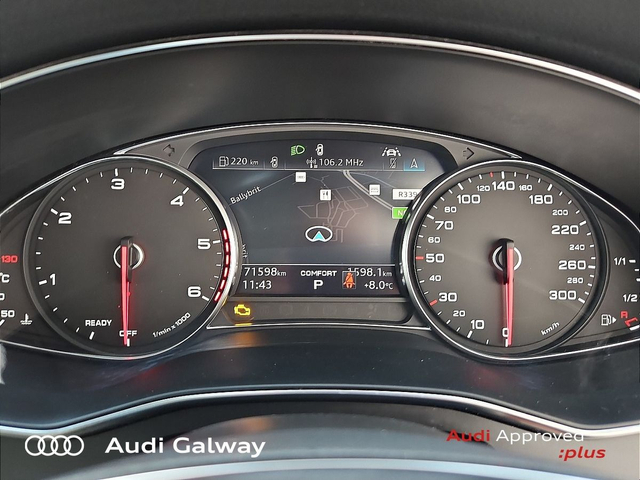 Audi A6 €468 p/m - SE 40 TDI A/T • Audi Music Interface • Audi Sound System • Bluetooth Interface • Hands Free Kit • HDD Satellite Navigation with MMI 3G • MMI Radio Plus • MMI SAT Nav • Mobile Device Interface (Media-In) • Mobile Phone Preparation-Bluetooth • Satelitte Navigation • Touchscreen Stereo • 8 Speed Automatic Gearbox • Audi Drive Select • Audi Stop/Start • Adaptive Cruise Control • Auto Handbrake • Cruise Control • DSG • Power Assisted Steering • 18"Alloys • Body Coloured Door Mirrors • Chrome Exterior Package • Front Fog Lights • High Gloss Pack • Metallic Paint • Air Conditioning • Armrest • Automatic Air Conditioning • Button Start-Stop • Climate Control • Door Opening Illumination Lights • Drivers Information System • Dual Climate control • Electric Mirrors • Electric Mirrors Heated Memory • Electric Windows • Front/Rear Floor Mats • Illuminated Centre Console Storage • Interior Lighting Pack • LED Interior Light Pack • Multi-Function Steering Wheel • Onboard Computer • Split Fold Rear Seats • Upholstery and Seats • 3 Spoke Leather Multifunction S-Line Steering Wheel • 3 Spoke Sports Steering Wheel • Electrically Adjustable Seats • Heated Seats • Leather Interior • Leather Steering Wheel • Lumbar Support • Memory Function Driver seat • ABS • Active Lane Assist • Alarm • Anti-Lock Brake System • Auto Lights and Wipers • Daytime Running Lights • Electronic Stability Programme (ESP) • Front Side Airbags with Curtain Airbags • High Beam Assist • ISO Fix • ISO Fix Front Passenger and Rear Seat Preparation • LED Headlights • Light and Rain Sensor • Locking Wheel Bolts • Multiple Airbags • Rear Park Assist • Reverse Camera • Reversing Sensors • Remote Electric Tailgate Opening/Closing • Side Impact Protection • Xenon Headlights • Xenon with LED Daytime Running Lights • 12V Power Points in Front + Rear Centre Consoles • Diesel Particulate Filter • Touch Screen Audi MMI Display • Touch Screen Dual Climate Control • Audi Connect • Reverse Camera