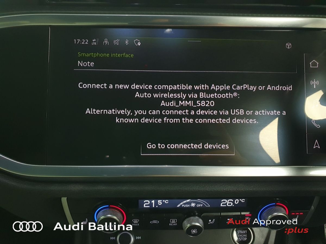 Now available at Connollys Audi Ballina, this stunning 2024 Audi Q3 is finished in ARKONA WHITE with a luxurious FULL BEIGE interior. Stylish, refined and packed with the latest technology, the Audi Q3 SE delivers the perfect combination of performance, comfort and everyday practicality. This low-mileage example has been carefully inspected and prepared by our factory-trained technicians, offering excellent efficiency, smooth driving dynamics and premium interior quality expected from an Audi. This vehicle is supplied through the Audi Approved :plus Programme, providing added reassurance and complete peace of mind for its next owner. If you’re looking for a premium, well-equipped and beautifully presented vehicle, this Audi is an excellent choice. Buying from Connolly’s Audi Ballina gives you peace of mind with: • Fully inspected vehicles • Flexible finance packages available • Trade-ins welcome • Nationwide Delivery Available Available now at Connollys Audi Ballina. Contact our sales team today to arrange a test drive or personalised video tour. • Bluetooth Interface • DAB Digital Radio Module • Touchscreen Stereo • Audi Stop/Start • Adaptive Cruise Control • Alloy Wheels • Chrome Exterior Package • Space Saver Spare Wheel • Tinted Windows • Button Start-Stop • Heated Seats • Leather Interior • Leather Steering Wheel • Auto Lights and Wipers • Child Locks • Reverse Camera • USB • Front and Rear Park Sensors • Voice control • Speed Limiter • Apple Carplay/Android Auto • Audi Connect • Audi Lane Assist • Audi Smartphone Interface • Audi Virtual Cockpit • Reverse Camera