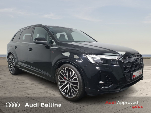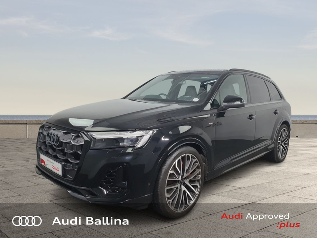 Now available at Connollys Audi Ballina, this stunning 2025 Audi Q7 is finished in MYTHOS BLACK METALLIC with a luxurious FULL BLACK LEATHER interior. Stylish, refined and packed with the latest technology, the Audi Q7 COMPETITION delivers the perfect combination of performance, comfort and everyday practicality. This low-mileage example has been carefully inspected and prepared by our factory-trained technicians, offering excellent efficiency, smooth driving dynamics and premium interior quality expected from an Audi. This vehicle is supplied through the Audi Approved :plus Programme, providing added reassurance and complete peace of mind for its next owner. If you’re looking for a premium, well-equipped and beautifully presented vehicle, this Audi is an excellent choice. Buying from Connolly’s Audi Ballina gives you peace of mind with: • Fully inspected vehicles • 12 Month Warranty • Flexible finance packages available • Trade-ins welcome • Nationwide Delivery Available Available now at Connollys Audi Ballina. Contact our sales team today to arrange a test drive or personalised video tour • Audi Music Interface • Bluetooth Interface • MMI SAT Nav • Audi Drive Select • Audi Stop/Start • Quattro Four Wheel Drive • Black Styling Pack • Metallic Paint • S-Line Exterior Pack • Tinted Windows • Ambient Lighting • 3 Spoke Leather Multifunction S-Line Steering Wheel • Heated Seats • Leather Interior • High Beam Assist • Reverse Camera • Full Service History • USB • Front and Rear Park Sensors • Voice control • Speed Limiter • Apple Carplay/Android Auto • USB C sharging ports • Audi Connect • Audi Lane Assist • Audi Smartphone Interface • Audi Virtual Cockpit • MMI Navigation Plus with MMI Touch • Reverse Camera • S Line Valcona Leather