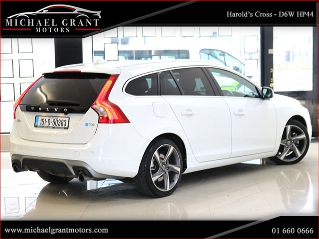 MICHAEL GRANT MOTORS ARE PROUD TO PRESENT THIS EXCEPTIONAL FULLY LOADED EXAMPLE OF 2015 VOLVO V60 1.6 PETROL T4 R DESIGN POLESTAR EDITION AUTOMATIC PRESENTED IN WHITE WITH BLACK LEATHER INTERIOR (SPORT SEATS) IN ESTATE AVANT. FULL SERVICE HISTORY. CALL 01 66 00 666 FOR MORE INFORMATION EXTRAS: REAR REVERSING CAMERA, REAR PARKING SENSORS, LEATHER SEATS, HEATED SEATS, BLIND SPOT WARNING, FULLY ELECTRIC SEATS, MEMORY SEATS, ANTI COLLISION WARNING SYSTEM PRICE €13,900 THIS VEHICLE HAS A FULL DOCUMENTED SERVICE HISTORY, WITH SERVICES CARRIED OUT AT THE FOLLOWING INTERVALS @17,642KM @28,323KM @46,633KM @56,131KM @65,758KM @75,012KM @86,645KM @97,492KM @115,441 CAR WILL COME FULLY SERVICED, NEW NCT, WITH A WARRANTY Options/Spec: Rear Parking Sensors, Upgraded Multi-Spoke Alloys, Rear Side Airbags, Lombar Support, Cruise Control, Speed Limiter, Dual Zone Climate Control, Bluetooth (w/ Music-Streaming), Automatic Lights, Automatic Wipers, Adjustable Seats, Adjustable Steering Wheel, Privacy Glass, Body Coloured Bumpers, Front Foglights, Immobiliser, Leather Steering Wheel, Steering Wheel Controls, Front and Rear Electric Windows, Electric Mirrors, ABS, Airbag, CD Player, USB Port, Auxiliary Port, Dual Zone Climate Control, Front and Rear Armrests, Daytime Running Lights, ISOFIX Points, Misc: 2 Keys / Full Cartell Repot / Fully Serviced Opening hours: Monday - Friday 8.30AM - 5.30PM / Saturday 10AM - 2PM. Late evening for pre-booked appointments. Have a question, don't hesitate to contact us. Tel: +353 (1) 660 0666. Live Chat 24/7.