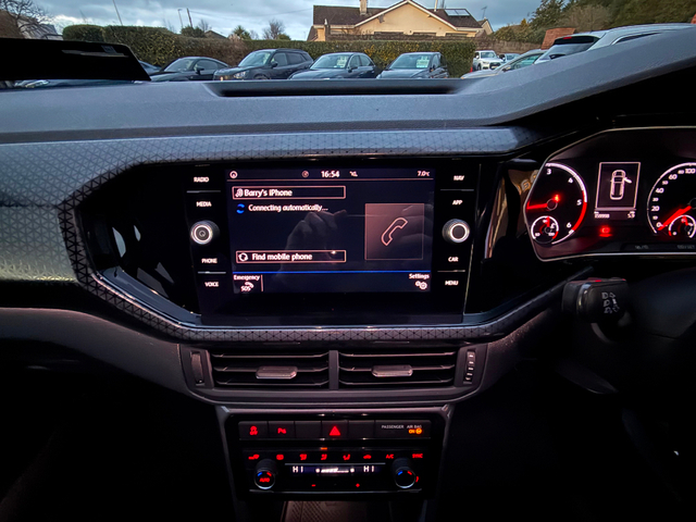 *ONLY TEN MINUTES FROM BLANCHARDSTOWN SHOPPING CENTRE* 2019 (192) VW T-Cross 1.6 TDI R-Line in immaculate condition throughout. Original Irish car with an excellent service record and huge spec to include: upgraded alloy wheels, reverse camera, parking sensors, folding mirrors, rear privacy glass, adaptive cruise control, sport seats, leather upholstery, lane assist, auto lights & wipers, bluetooth telephone system, touch screen media control unit, apple CarPlay, android auto, front centre armrest, abs, esp, isofix, multiple airbags etc. For further information, please contact Barry on 01 8017777 / 086 3358879