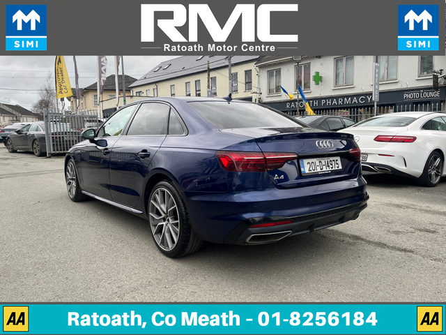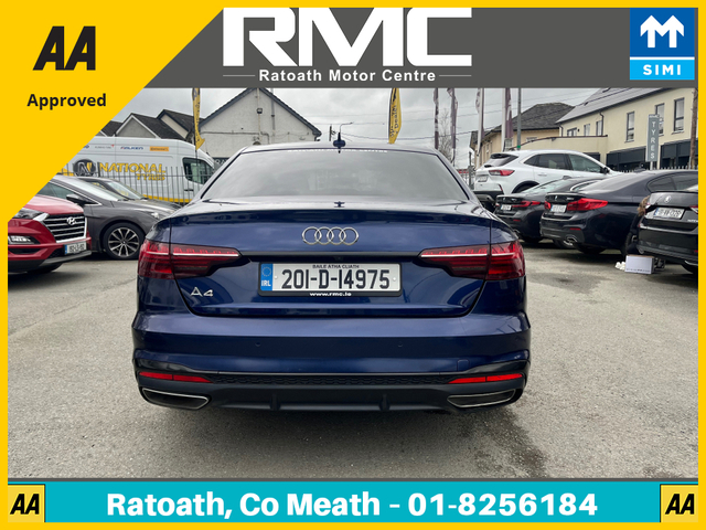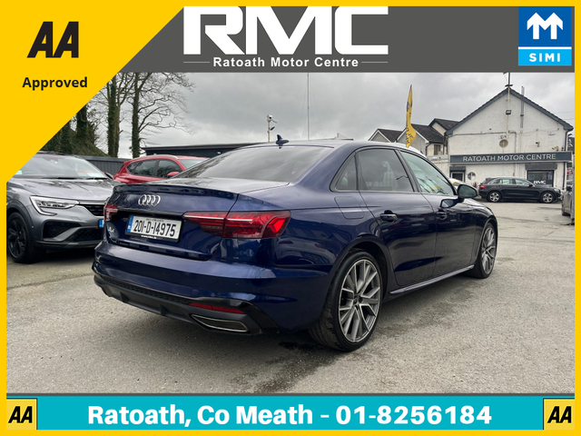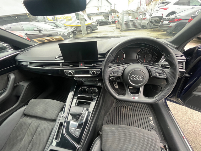 FINANCE ARRANGED - TRADE IN'S WELCOME Presenting an immaculate 2020 Audi A4 Limousine 2.0 TDI S-Line finished in metallic Navarra blue. A stunning combination of executive style, dynamic performance, and excellent practicality. This isnt just a car its a complete driving experience that appeals to drivers who appreciate quality, refinement, and efficiency. The S-Line trim elevates the A4s presence with sportier styling and refined details. A standout choice for anyone seeking a premium executive car with sporting character, daily usability, and strong economy. To Arrange a viewing and test drive of this car call our sales team on 018256184 6 Month Warranty, Central Locking, Electric Windows, Airbag, Cruise Control, Centre Armrest, Multi-function steering wheel, Traction Control, Metallic Paint, Parking Sensors, Bluetooth, EBD, Isofix, History Checked, Apple Car Play, Android Auto, Active Safety Braking / City Brake / Collision Alert, Stop/Start Button, External Devices Connectivity, Cup holders, Remote boot/hatch/rear door release, Stability control