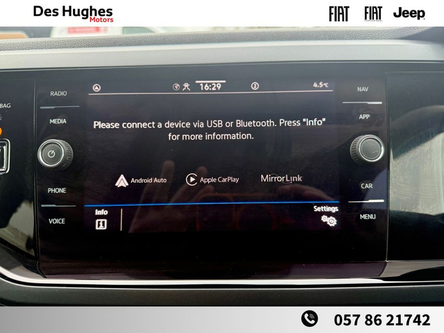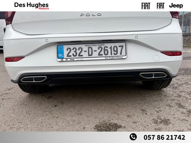 Contact COLIN for anymore info on 087 0541111. Vw Polo 1.0 tsi 95 bhp R-Line dsg with winter pack and driver assistance pack. 1 owner from new. 12 months warranty. 12 months road side assistance. Trade ins welcome. Finance available. Contact COLIN for anymore info on 087 0541111. Established in 1987, Des Hughes Motors brings decades of experience to the motor trade. We proudly represent Fiat, Jeep, and Fiat Professional across Laois and the surrounding counties. Previously serving as the main Toyota dealer in Laois for nearly 30 years, we remain the only authorised Toyota repairer in the county. Whether it’s your first or tenth vehicle purchase from us, we’re committed to ensuring you drive away happy. We operate with a transparent pricing policy — each vehicle is price-checked weekly, taking into account mileage, condition, specification, and warranty to ensure you always get the best value. Every vehicle we sell goes through a comprehensive pre-sale process, including: Full history check Tyre inspection (4mm tread minimum) Full vehicle service Complete valet and clean Opening Hours: Monday–Friday: 9:00 AM – 5:30 PM Saturday: 9:30 AM – 2:00 PM Closed on Bank Holiday weekends Get in touch: 057 86 21742 [email protected] Apply for finance anytime at www.deshughes.ie