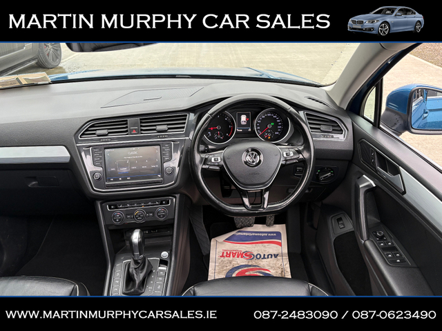 2017 VOLKSWAGEN TIGUAN COMFORTLINE 2.0 TDI 190 BHP 4 MOTION AUTO - Finance available - Trade ins accepted - Dealer warranty - NCT tested until 10/2027 - Annual road tax €400 - Panoramic roof - Full leather interior - Heated seats - Electric seats - Memory seats - Tow bar - Reverse camera - 4 Motion Drive mode selector - Cruise control - Bluetooth - Alloys MARTIN MURPHY CAR SALES, KILKEARY, NORWOOD NENAGH, CO TIPPERARY Central Locking, Electric Windows, Airbag, Fog Lamps, Privacy Glass, Centre Armrest, Multi-function steering wheel, Roof Rails, Satellite Navigation, Traction Control, Metallic Paint, Parking Sensors, Bluetooth, EBD, Isofix, Active Safety Braking / City Brake / Collision Alert, Stop/Start Button, External Devices Connectivity, Cup holders, Remote boot/hatch/rear door release, Stability control