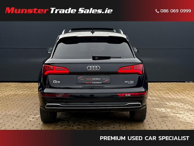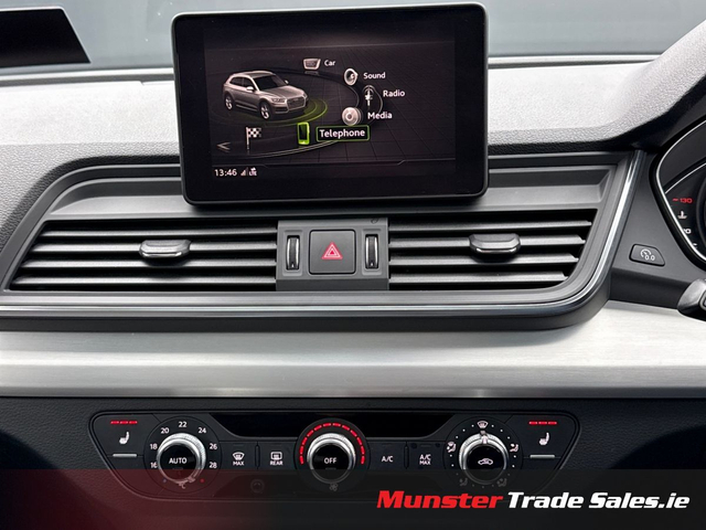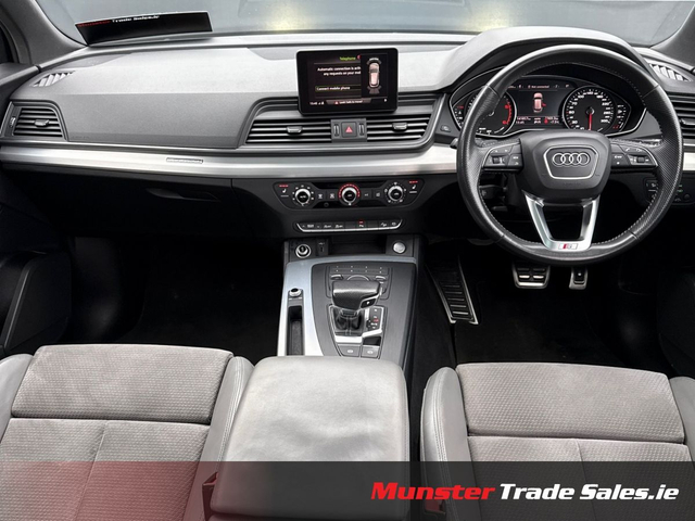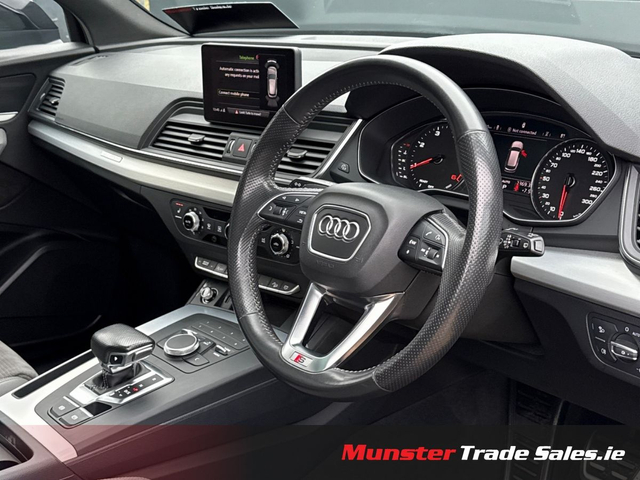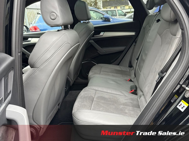 2019 Audi Q5 2.0 TDI quattro S Line • 190PS One Owner • 141,000 km • Full S Line Specification Finished in Brilliant Black with Rotor Grey / Black Alcantara S Line interior, this one-owner Q5 presents as a truly premium example. Powered by the refined 190PS 2.0 TDI quattro engine paired to the 7-speed S tronic gearbox, it delivers smooth performance, superb comfort, and all-weather traction. Key Features • S Line exterior styling package • 20-inch 5-segment-spoke alloys (Contrast Grey, polished) • Panoramic glass sunroof • Sports suspension • S Line sports seats (Alcantara/leather) • Heated front seats • LED headlights + dynamic rear indicators • Parking Aid Plus (front & rear sensors) • Electric tailgate • Ambient interior lighting package • High-gloss styling package • Privacy glass with acoustic glazing • Auto-dimming frameless mirror • Audi Drive Select • Cruise control with speed limiter • Audi Smartphone Interface (Apple CarPlay / Android Auto) • Bluetooth + Audi Sound System • Roof rails in matte aluminium • Hold Assist & TPMS A very well-kept Q5 with strong spec, one owner from new, and presented in excellent condition throughout. Munster Trade Sales, Limerick call for details www.munstertradesales.ie • Full vehicle Service & inspection • Professionally valeted & Detailed • Car History Checked • Finance Available • 2 Remote keys