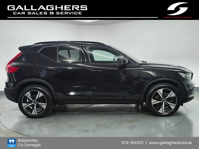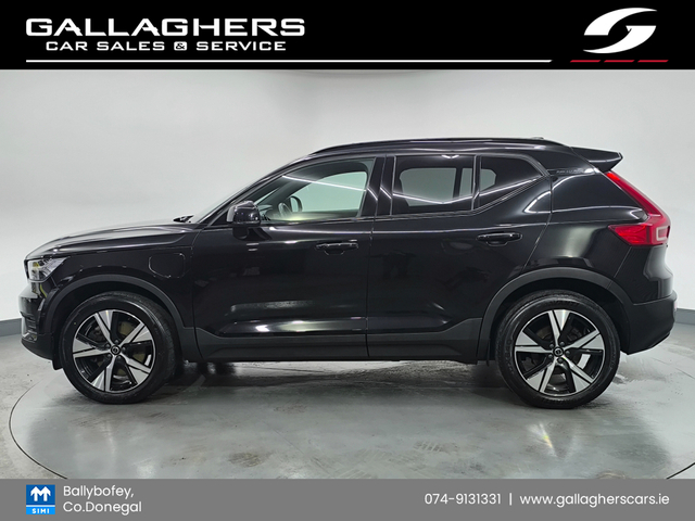 2022 (221) VOLVO XC40 R DESIGN T4 RECHARGE PETROL PLUG IN HYBRID AUTOMATIC TRADE IN PRICE €33995 - LED LIGHTING - HALF LEATHER SEATS - PARKING SENSORS - SAT NAV -CRUISE CONTROL - BLUETOOTH - PRIVACY GLASS - ELECTRIC TAILGATE - AUTO LIGHTS - SERVICE HISTORY - 2 KEYS - CHEAP ROAD TAX - PRICE INCLUDERS VRT PAID & PLATES FITTED - NATIONWIDE DELIVERY - NATIONWIDE WARRANTY - FINANCE AVAILABLE PAUL 087 3009930 CATHAL 087 4440077 OFFICE 074 9131331 GALLAGHERS CARS DONEGAL ROAD BALLYBOFEY DONEGAL F93A6C1 Air Conditioning, Central Locking, Electric Windows, Airbag, Alloy Wheels, Cruise Control, Electric Mirrors, Rear Spoiler, Privacy Glass, Automatic Lights, Centre Armrest, Luggage Cover, Multi-function steering wheel, Roof Rails, Satellite Navigation, Traction Control, Metallic Paint, Multiple Air Bags, Xenon Lights, Anti-Theft System, Parking Sensors, Bluetooth, Remote Central Locking, EBD, Electronic handbrake, Folding rear seats, Isofix, Hill holder, History Checked, Finance Checked, Apple Car Play, Android Auto, Motorised Tailgate, Lane Departure Warning, Wireless Smartphone Control, Speed Sign Recognition & Recommendation, Active Safety Braking / City Brake / Collision Alert, Stop/Start Button, Touch Screen Media Control, Drive Mode Selector, Dual Zone Climate Control, Daytime Running Lights, 2 Keys, External Devices Connectivity, Cup holders, Remote boot/hatch/rear door release, Stability control