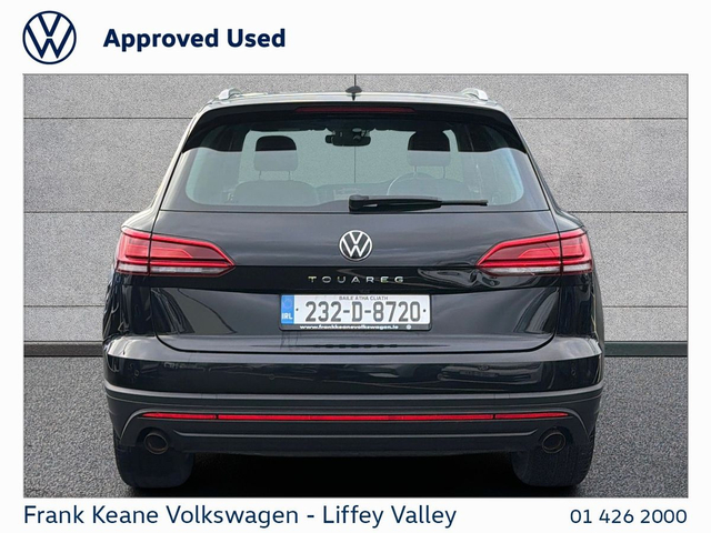 FRANK KEANE - Customer Driven Since '67. TOUAREG COMMERCIAL 2-SEATER at Frank Keane Volkswagen Liffey Valley, We have this 2023 Volkswagen Touareg Commerical with just 91,245KM. Finished in GRENADILLA BLACK METALLIC with a Full Leather Interior. Experience complete confidence with the Frank Keane Volkswagen Optional Pre-Owned Vehicle Protection Pack — including a 24-month warranty, 3-year Return to Invoice (RTI) investment protection, and 3-year paint, glass, and upholstery protection with LifeShine. Premium cover, expertly designed to protect your vehicle and your investment. To Learn more, speak to one of our Sales Team in Frank Keane Volkswagen Liffey Valley today. Specification that Includes • Full Leather • Rear View Camera, • Electric Tailgate, • CarPlay & Android Auto, • Heated Seats, • LED Headlights, • Adaptive Cruise Control, • 4Motion Drive Select, • Large Rear Load Space, • Climate Control. Please contact our Sales Team today for a Personalized Video of this Car, Digital Part Exchange Valuations and Tailored Funding Options to meet your needs on 01-4262000 or email [email protected] Frank Keane Volkswagen offers the highest levels of value and customer experience across both sales and service. Located at Liffey Valley Motor Mall, we ensure all our used vehicles are prepared to the highest of standards and come with a minimum of 12 months warranty. Call us 01-4262000 to arrange an appointment with our Sales Team. FRANKKEANEVOLKSWAGEN.IE